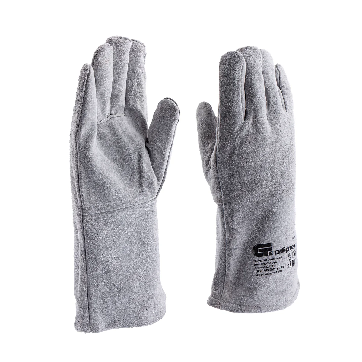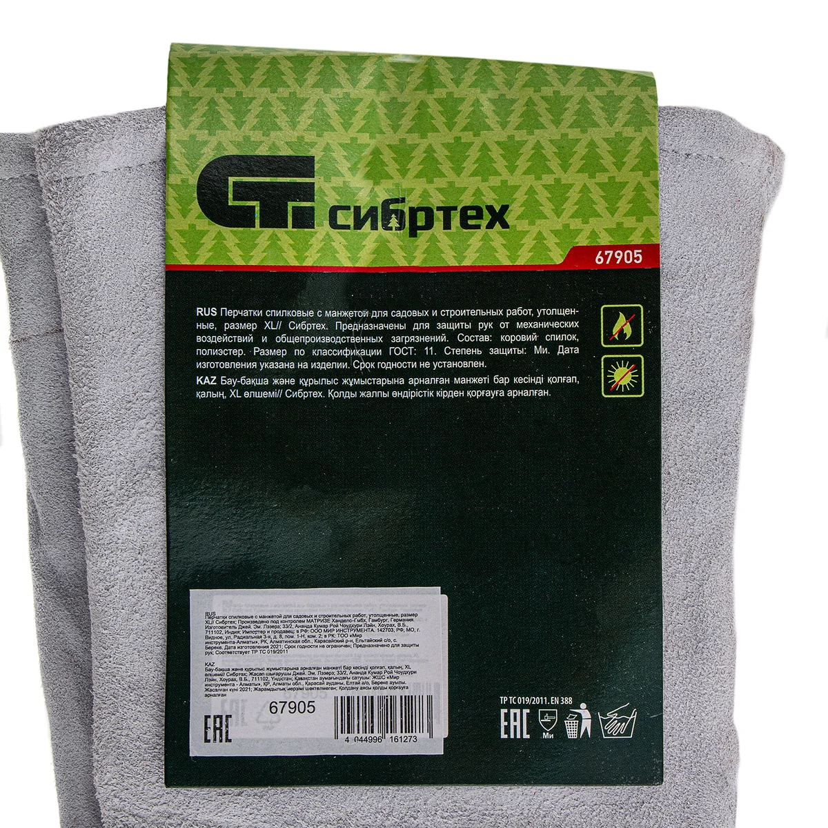 Перчатки спилковые с манжетой для садовых и строительных работ, утолщенные, размер XL, Сибртех 67905