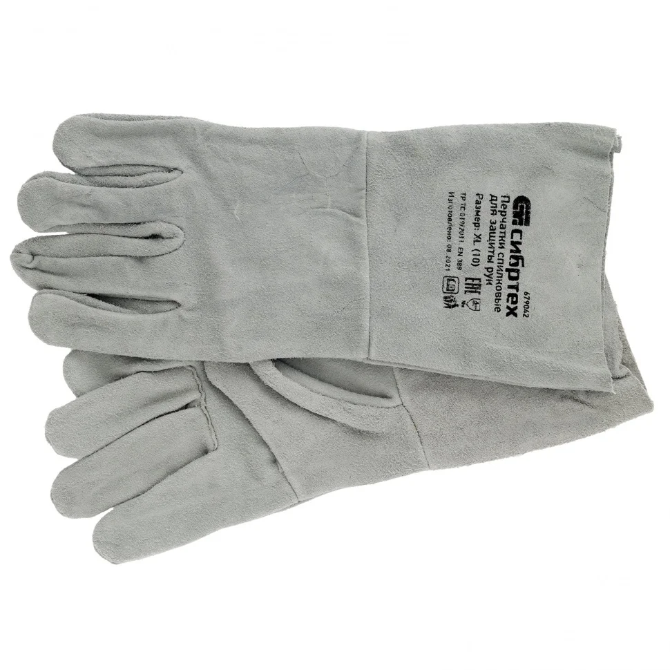 Перчатки спилковые с манжетой для садовых и строительных работ, размер XL, Сибртех 679042