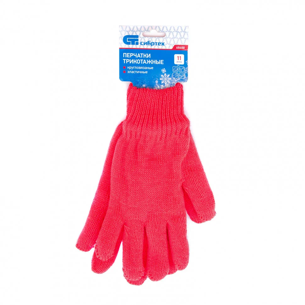 Перчатки трикотажные, акрил, двойные, коралл, двойная манжета Россия Сибртех 68688