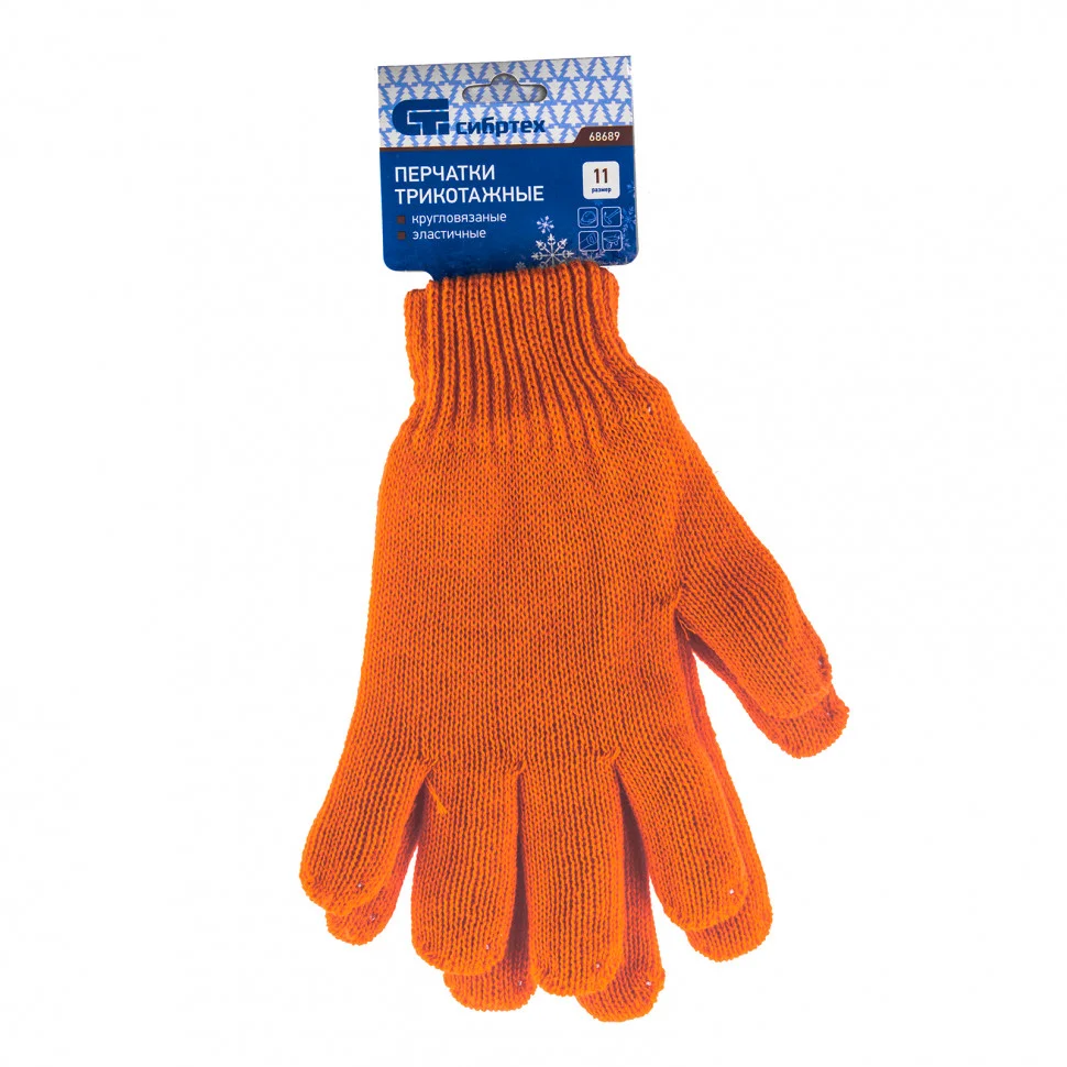 Перчатки трикотажные, акрил, двойные, оранжевый, двойная манжета Россия Сибртех 68689
