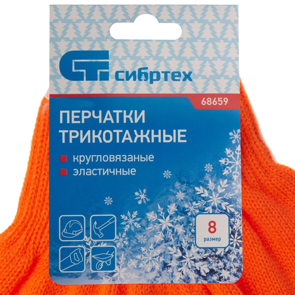 Перчатки трикотажные, акрил, оранжевый, оверлок Россия Сибртех 68659