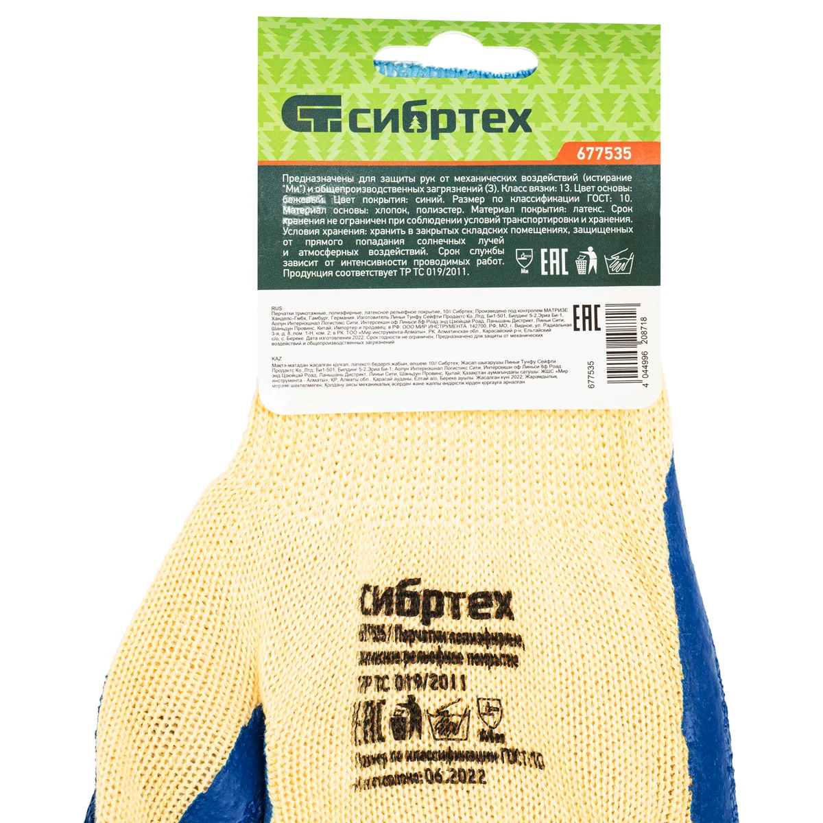 Перчатки трикотажные, полиэфирные, латексное рельефное покрытие, 10// Сибртех 677535