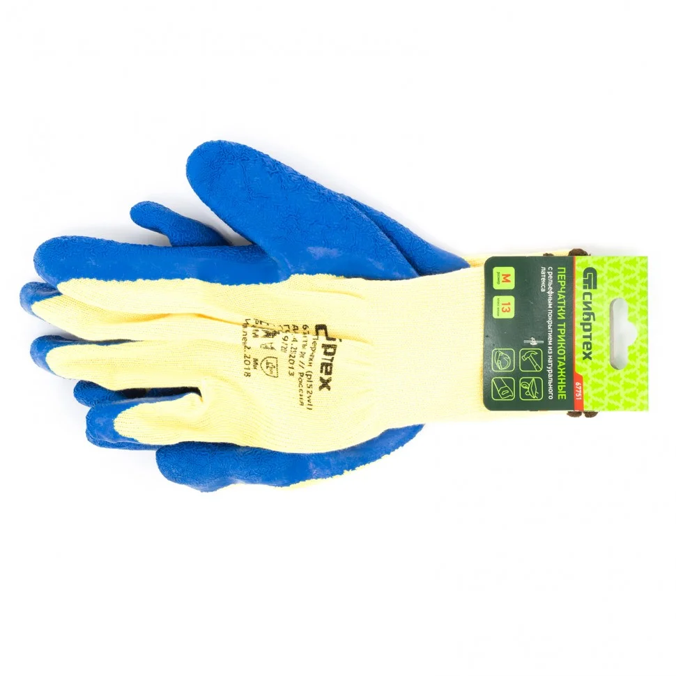 Перчатки трикотажные, полиэфирные, латексное рельефное покрытие, M Сибртех 67751