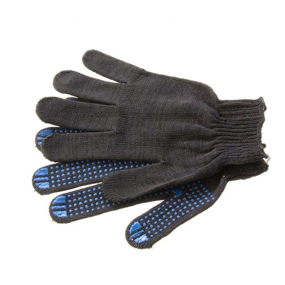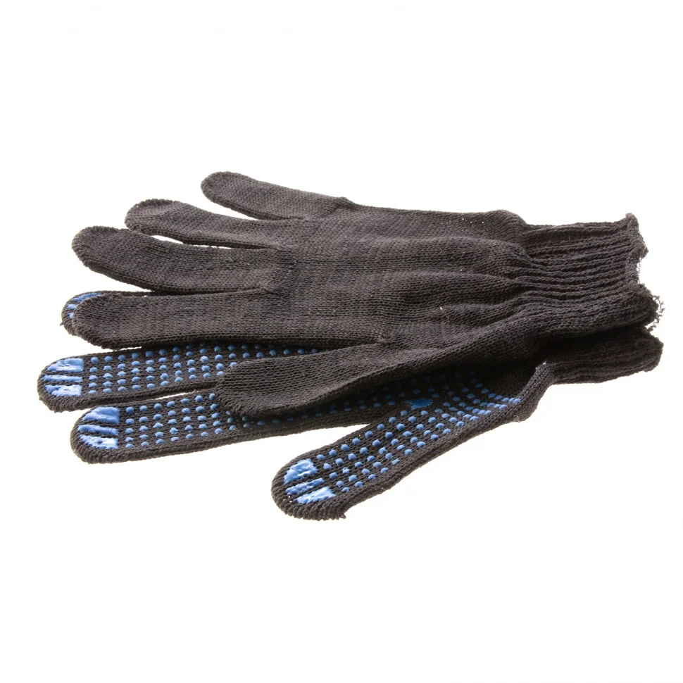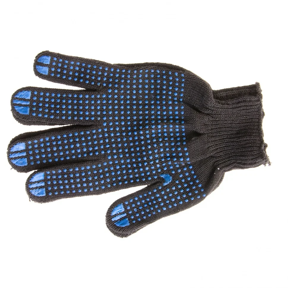 Черные трикотажные перчатки 67855 с ПВХ-покрытием «Точка», 10 класса вязки, защищают руки от царапин, порезов, ссадин, мозолей и загрязнений. Тонкая пряжа обеспечивает пальцам чувствительность, поэтому перчатки подходят для выполнения точных работ. Благодаря ПВХ-покрытию ладонной части инструменты не выскальзывают из рук. Перчатки используют в строительстве, на производстве, во время ремонта помещений и обслуживания автомобилей. Пригодятся они и в хозяйстве.ПреимуществаОснова выполнена из воздухопроницаемой хлопчатобумажной пряжи, поэтому руки в перчатках не потеют.В пряже содержится полиэфирная нить, что повышает прочность и эластичность перчаток.Покрытие из ПВХ препятствует истиранию, продлевая срок службы изделий.Манжеты плотно облегают запястья, обеспечивая удобную посадку перчаток на кистях рук.Материал перчаток не вызывает аллергии, поэтому их использование безвредно для здоровья.Перчатки не ограничивают движения пальцев, обеспечивая комфорт во время работы.