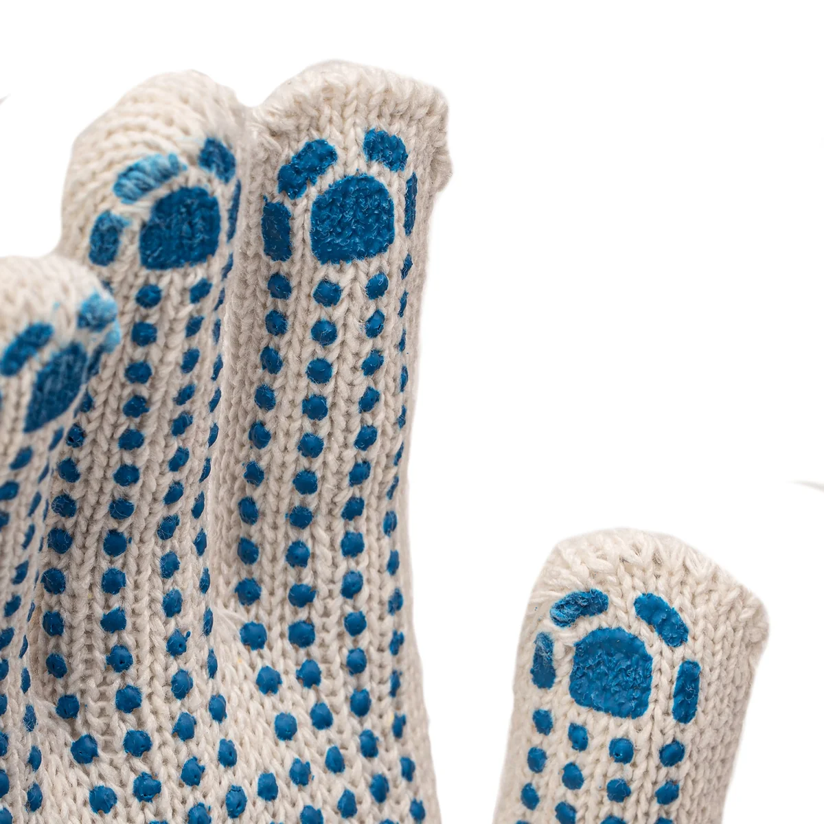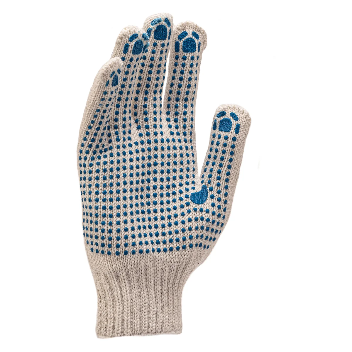 Трикотажные перчатки 67824 с 2хПВХ точкой», 7 класса вязки, защищают руки от царапин, порезов, ссадин, мозолей и загрязнений. Тонкая пряжа обеспечивает пальцам чувствительность, поэтому перчатки подходят для выполнения точных работ. Благодаря ПВХ-покрытию ладонной части инструменты не выскальзывают из рук. Перчатки используют в строительстве, на производстве, во время ремонта помещений и обслуживания автомобилей. Пригодятся они и в хозяйстве.Преимущества Основа выполнена из воздухопроницаемой хлопчатобумажной пряжи, поэтому руки в перчатках не потеют.В пряже содержится полиэфирная нить, что повышает прочность и эластичность перчаток.Покрытие из ПВХ препятствует истиранию, продлевая срок службы изделий.Манжеты плотно облегают запястья, обеспечивая удобную посадку перчаток на кистях рук.Материал перчаток не вызывает аллергии, поэтому их использование безвредно для здоровья.Перчатки не ограничивают движения пальцев, обеспечивая комфорт во время работы.