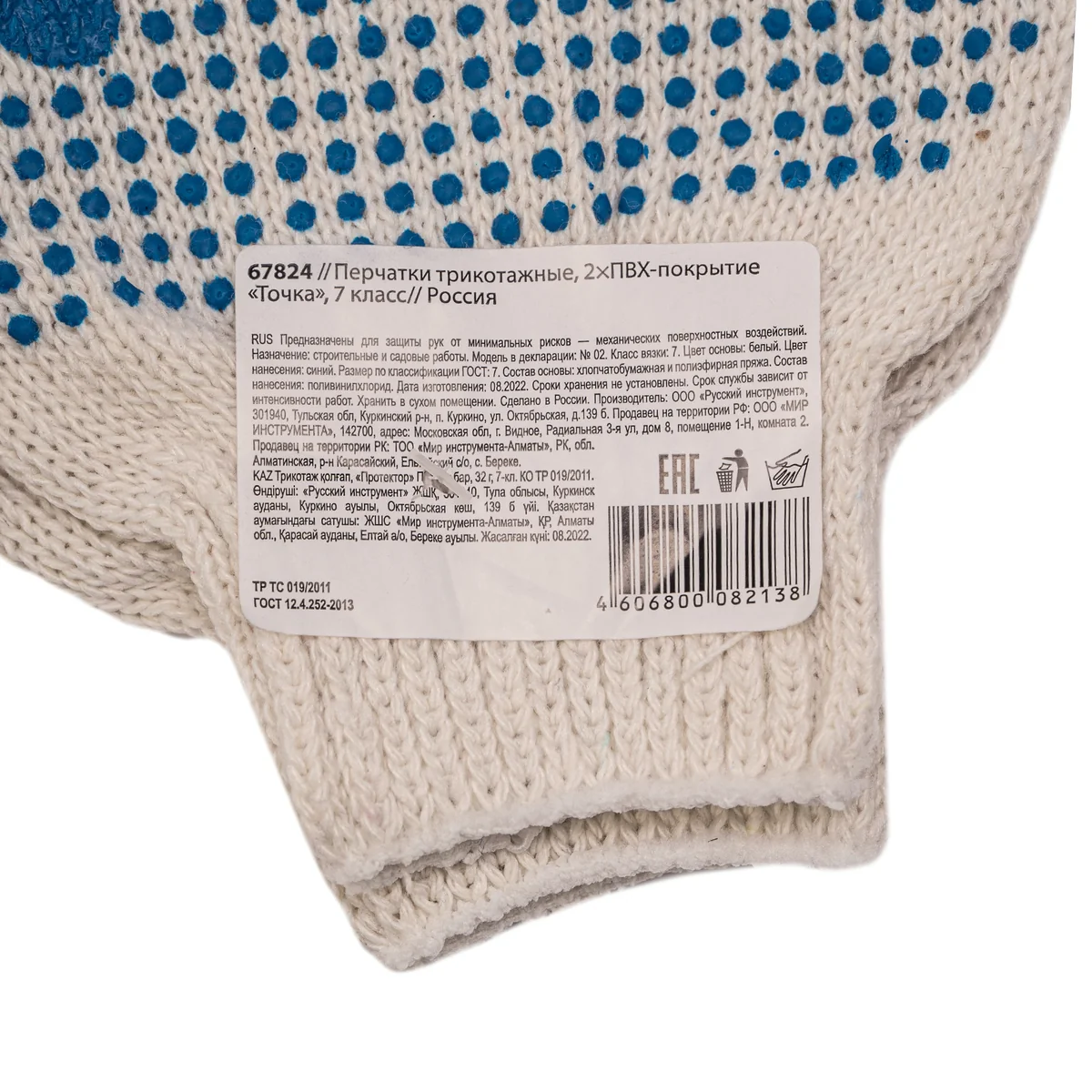 Перчатки трикотажные, с 2хПВХ точкой, 7 класс// Россия 67824