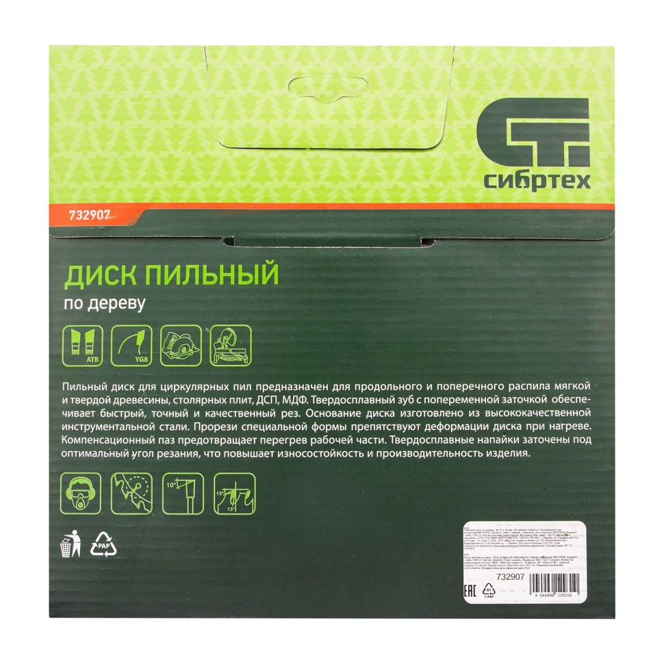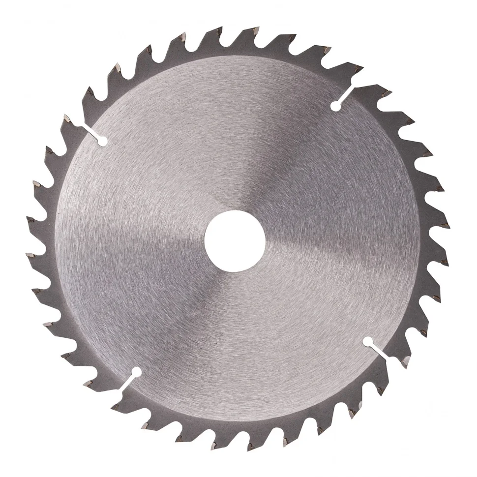 Пильный диск Сибртех 732907, ф210 х 30 мм, с 36 зубьями используется с торцовочными и циркулярными пилами, а также с распиловочными станками. Он предназначен для продольного и поперечного пиления древесины мягких и твердых пород, фанеры, МДФ и ДСП. Благодаря средним зубьям достигается высокая скорость реза. Диск применяется для строительных, ремонтных работ, а также в бытовых целях.ПреимуществаМатериал режущих пластин - твердый сплав YG8, позволяющий долгое время сохранять заточку.Основа диска изготовлена из марки Сталь 50, обладающей стойкостью к нагрузкам.Твердосплавные напайки крепко держатся на зубцах благодаря качественному медному припою.Диск режет быстро и ровно за счет попеременной заточки зубьев.Компенсационные пазы защищают диск от заклинивания и от деформации в результате нагрева, способствуют улучшению качества реза.