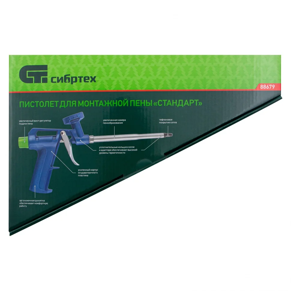 Пистолет для монтажной пены Стандарт, усиленный пластмассовый корпус Сибртех 88679