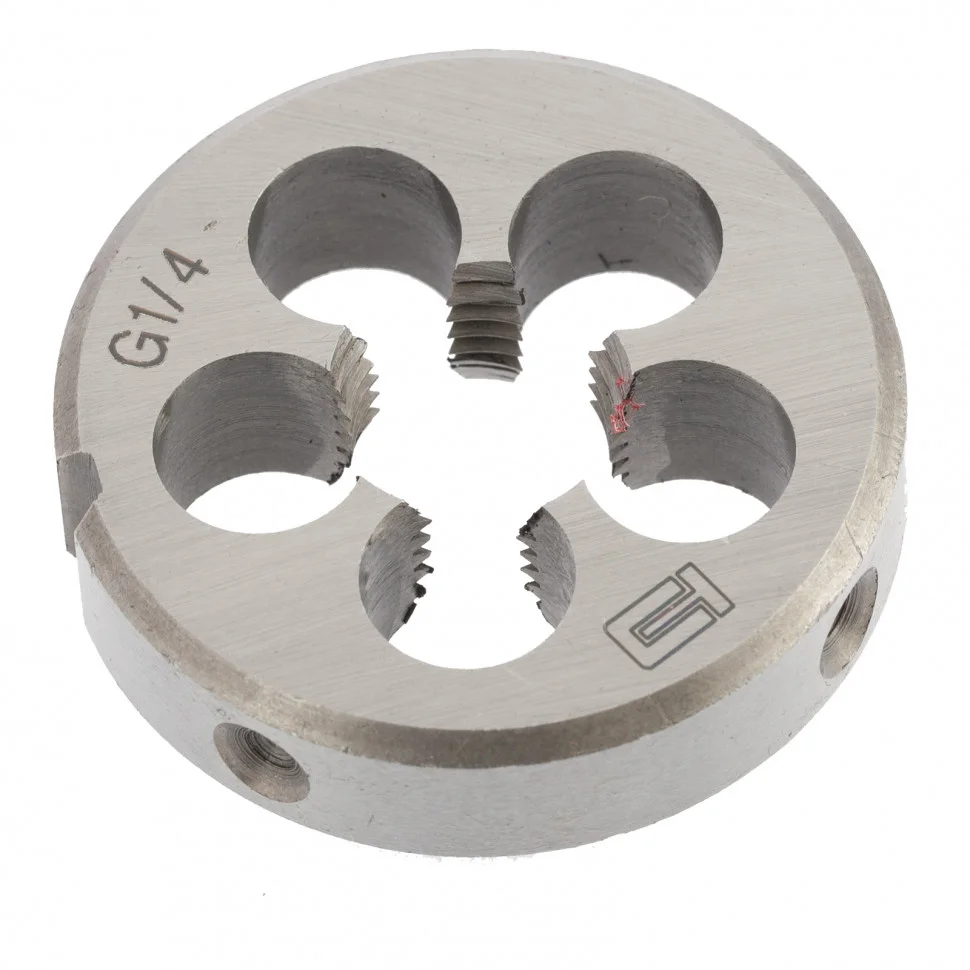 Плашка Сибртех 77114, G1/4, предназначена для нарезания дюймовой резьбы на трубах. С ее помощью можно осуществить слесарные и монтажные работы в мастерской, гараже, дома. Благодаря цельному корпусу плашка нарезает высококачественную резьбу, т.к. полностью захватывает деталь.ПреимуществаНадежность и долговечность плашки достигается за счет инструментальной стали 9XC, из которой она изготовлена.Твердость режущих кромок 60 HRC соответствует стандартам ГОСТа.За счет глубоких зон для отвода стружки плашка обеспечивает высокую скорость нарезки.Благодаря крупной маркировке с обозначением размера плашку легко найти среди других инструментов.Высокий класс точности 6Н является гарантией соответствия резьбы европейским стандартам качества.