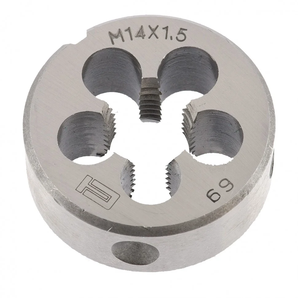 Плашка Сибртех 77036, М14 х 1,5 мм, поможет нарезать внешнюю метрическую резьбу. Она проста в использовании, поэтому пригодится в быту при проведении слесарных и монтажных работ даже начинающим мастерам. Цельная конструкция плашки позволяет полностью захватывать деталь и нарезать ее за один проход, благодаря чему получается высокоточная и качественная резьба.ПреимуществаНадежность и долговечность — плашка изготовлена из инструментальной стали 9XC.Соответствие стандартам ГОСТа — режущие кромки закалены до твердости 60 HRC.Высокая скорость нарезки — глубокие зоны обеспечивают эффективность отвода стружки.Точность и качество работы — плашка имеет три режущих зоны.Крупная маркировка — на плашке имеется обозначение размера, поэтому ее легко найти среди других инструментов.Класс точности 6Н — резьба соответствует европейским стандартам качества.