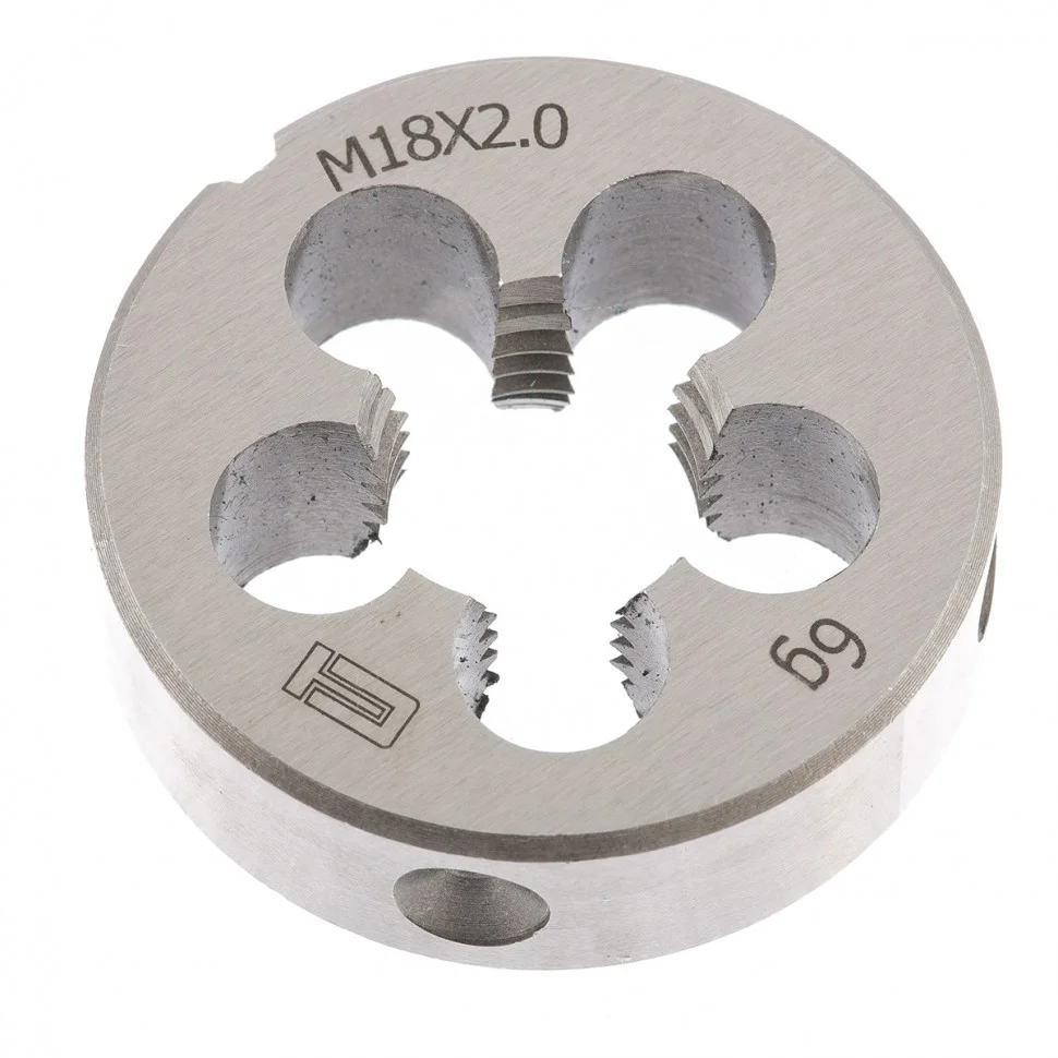 Плашка Сибртех 77050, М18 х 2,0 мм, поможет нарезать внешнюю метрическую резьбу. Она проста в использовании, поэтому пригодится в быту при проведении слесарных и монтажных работ даже начинающим мастерам. Цельная конструкция плашки позволяет полностью захватывать деталь и нарезать ее за один проход, благодаря чему получается высокоточная и качественная резьба.ПреимуществаНадежность и долговечность — плашка изготовлена из инструментальной стали 9XC.Соответствие стандартам ГОСТа — режущие кромки закалены до твердости 60 HRC.Высокая скорость нарезки — глубокие зоны обеспечивают эффективность отвода стружки.Точность и качество работы — плашка имеет три режущих зоны.Крупная маркировка — на плашке имеется обозначение размера, поэтому ее легко найти среди других инструментов.Класс точности 6Н — резьба соответствует европейским стандартам качества.