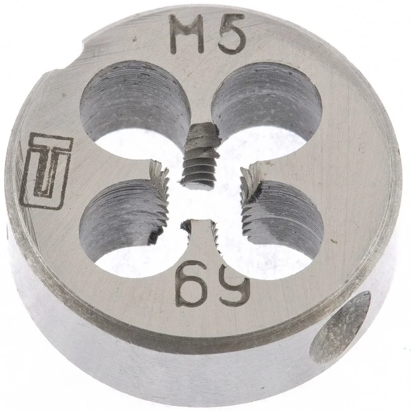 Плашка Сибртех 77013, М5 х 0,8 мм, поможет нарезать внешнюю метрическую резьбу. Она проста в использовании, поэтому пригодится в быту при проведении слесарных и монтажных работ даже начинающим мастерам. Цельная конструкция плашки позволяет полностью захватывать деталь и нарезать ее за один проход, благодаря чему получается высокоточная и качественная резьба.ПреимуществаНадежность и долговечность — плашка изготовлена из инструментальной стали 9XC.Соответствие стандартам ГОСТа — режущие кромки закалены до твердости 60 HRC.Высокая скорость нарезки — глубокие зоны обеспечивают эффективность отвода стружки.Точность и качество работы — плашка имеет три режущих зоны.Крупная маркировка — на плашке имеется обозначение размера, поэтому ее легко найти среди других инструментов.Класс точности 6Н — резьба соответствует европейским стандартам качества.
