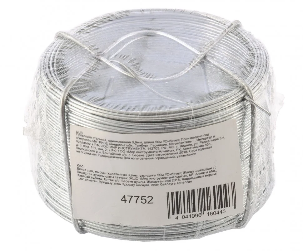 Стальная оцинкованная проволока Сибртех 47752 диаметром 0,9 мм и длиной 50 м рассчитана на бытовое использование. Пригодится для фиксации и связывания различных предметов, грузов, создания растяжек, также будет полезна при занятиях рукоделием.ПреимуществаНадежность — проволока из прочной стали легко натягивается и хорошо держит форму.Защита от разрушения — цинковое покрытие предотвращает образование коррозии.Длина 50 м — мотка проволоки на хватит для большого объема работ.