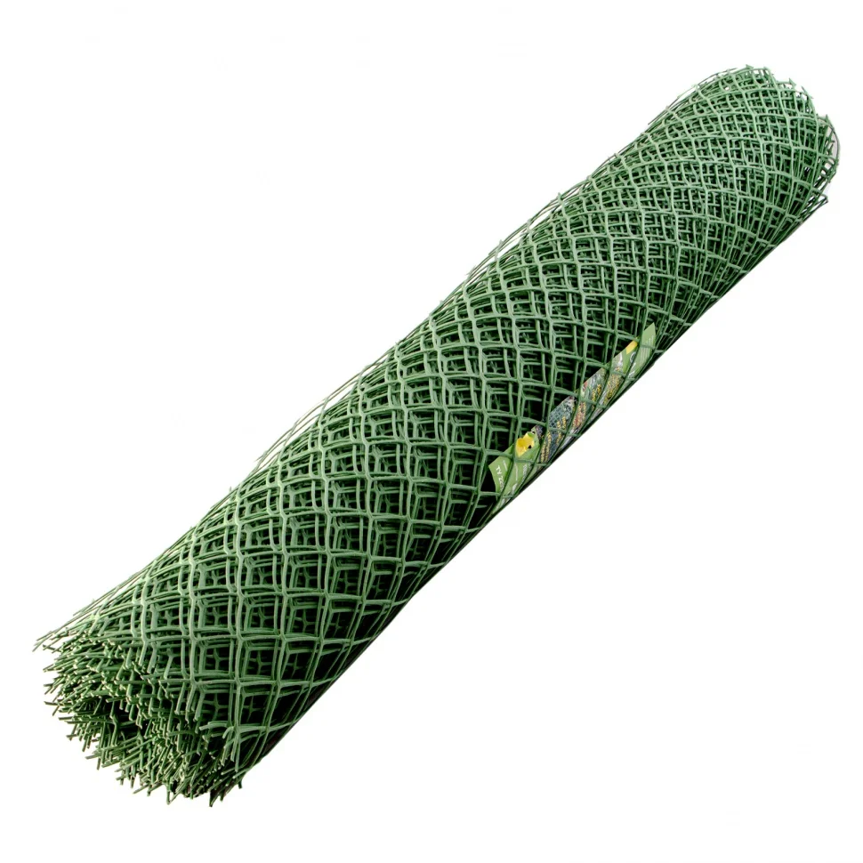 Зеленая пластиковая заборная решетка 64523, 1,5 х 25 м, в рулоне, с ячейками 70 х 70 мм, служит для ограждения садовых и жилых участков. Благодаря ей можно построить забор на детских и спортивных площадках или зонировать пространство на даче. Решетка также позволяет создать живую изгородь в саду или вольер для птиц и животных.ПреимуществаДолговечность — решетка из полипропилена не разрушается под воздействием влаги, микроорганизмов, УФ-лучей и низких температур.Практичность — забор легко очищается под напором воды, не требует применения моющих средств.Квадратные ячейки 70 х 70 мм — сетка выдерживает механические воздействия, при этом пропускает достаточно света для роста растений.Эстетичность — ограда зеленого цвета гармонично впишется в композицию сада.Удобство транспортировки — решетка скручена в рулон.