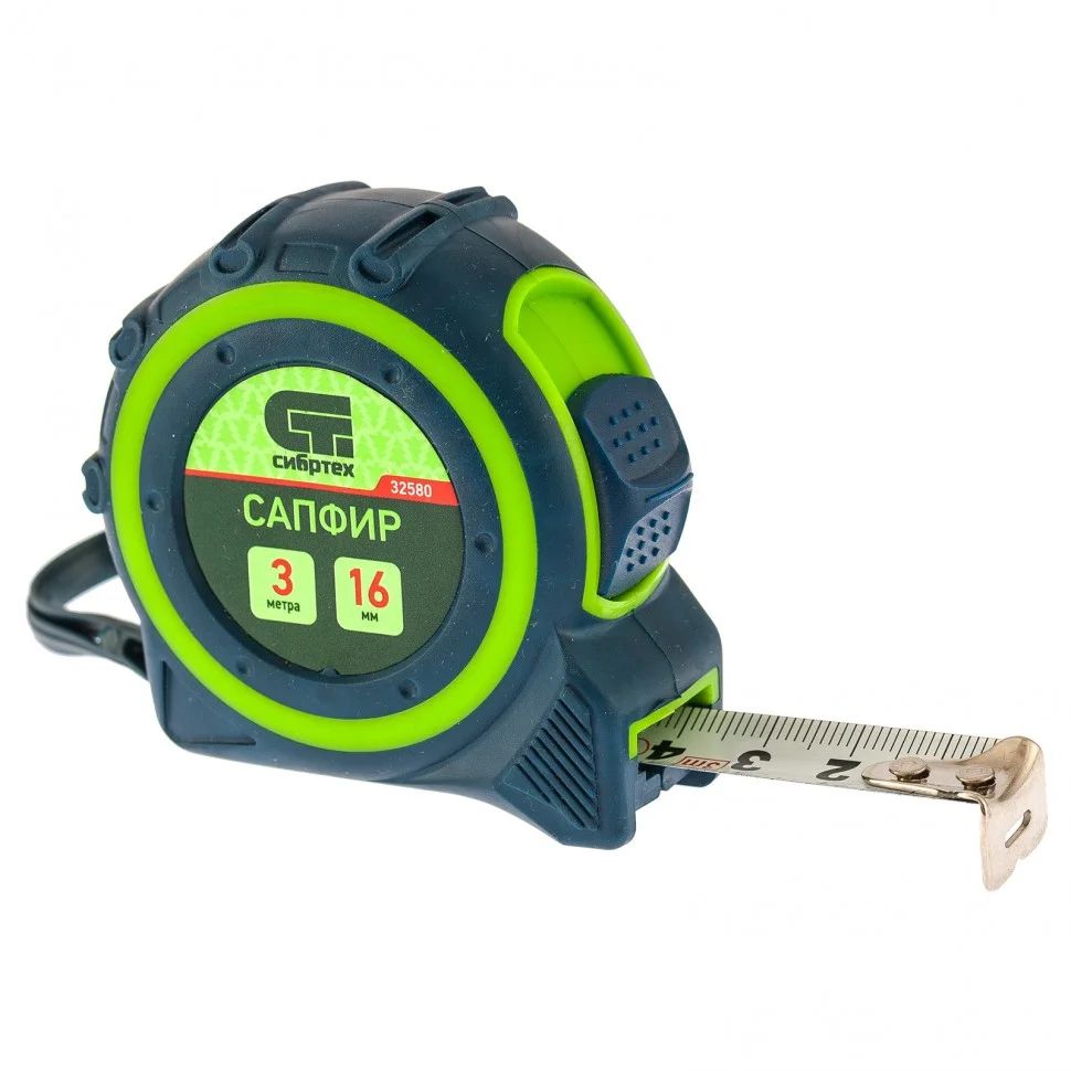 Рулетка Сибртех Сапфир 32580 с лентой 3 м х 16 мм выполнена в двухкомпонентном корпусе. Инструмент поможет определить длину заготовок, материалов, конструкций и т.д. Будет полезна дома, в гараже, мастерской, при проведении монтажных и ремонтных работ. Зацеп с отверстием позволяет использовать рулетку в качестве циркуля.ПреимуществаДвухкомпонентный корпус отличается ударопрочностью и надежностью, т.к. выполнен из ABS-пластика с резиновыми вставками.Небольшая ширина полотна 16 мм позволяет работать в труднодоступных местах.Подвижный зацеп обеспечивает точность работы, компенсируя его толщину.Благодаря ремешку и клипсе рулетку можно подвешивать на запястье или пояс для удобства работы.