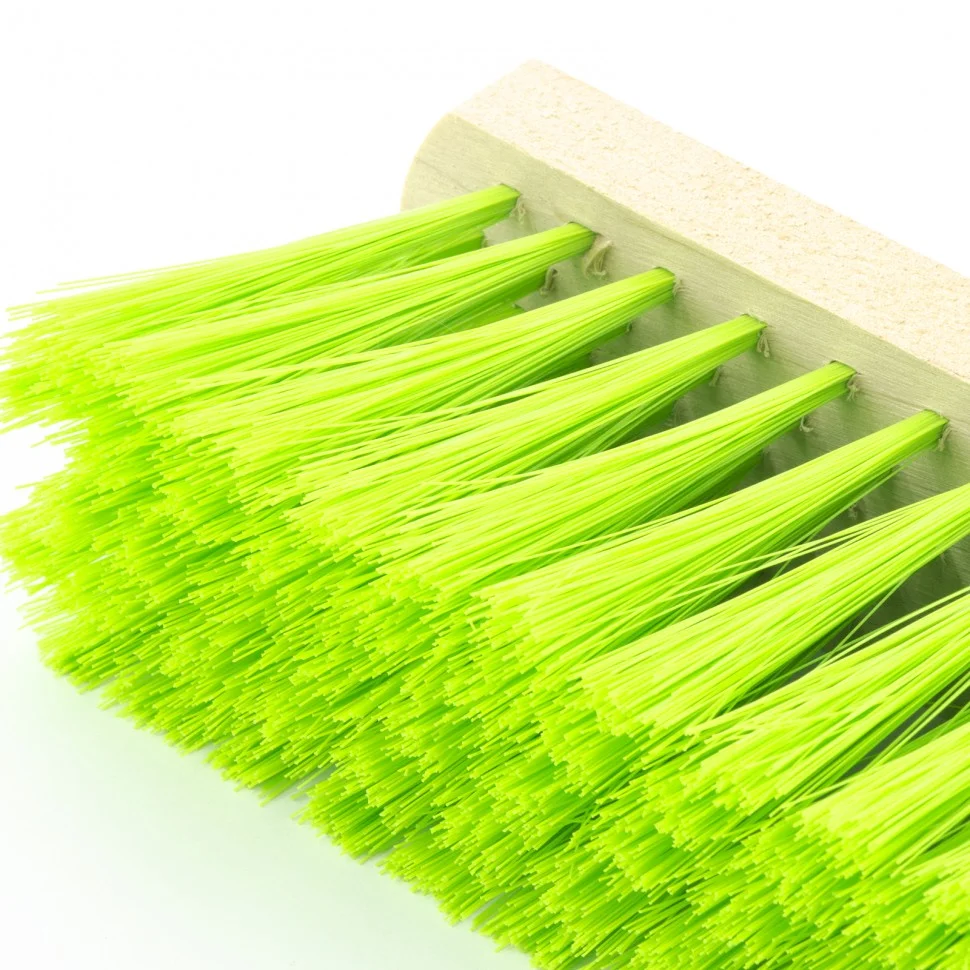 Деревянная щетка для пола Сибртех 84626 длиной 40 см, 5-рядная, с тулейкой с резьбой под углом, без черенка, предназначена для уборки как внутри, так и вне помещений. Имеет густую 5-рядную щетину, благодаря которой тщательно сметает пыль и мусор с пола, а также листву и мусор с дорожек, площадок, тротуаров и лестниц. Рабочая часть длиной 40 см удобна для уборки участков большой площади. Черенок приобретается отдельно, рекомендуемая модель — 68416.ПреимуществаОснование из твердой древесины обеспечивает надежность инвентаря.Прочная синтетическая щетина устойчива к истиранию, поэтому щетка прослужит долго.Пучки щетины надежно закреплены и не выпадают из колодки во время уборки.Тулейка, расположенная под углом, обеспечивает удобное положение черенка.Резьбовая тулейка позволяет надежно зафиксировать черенок.