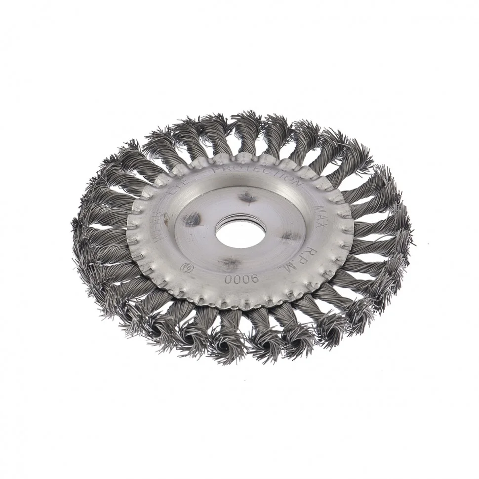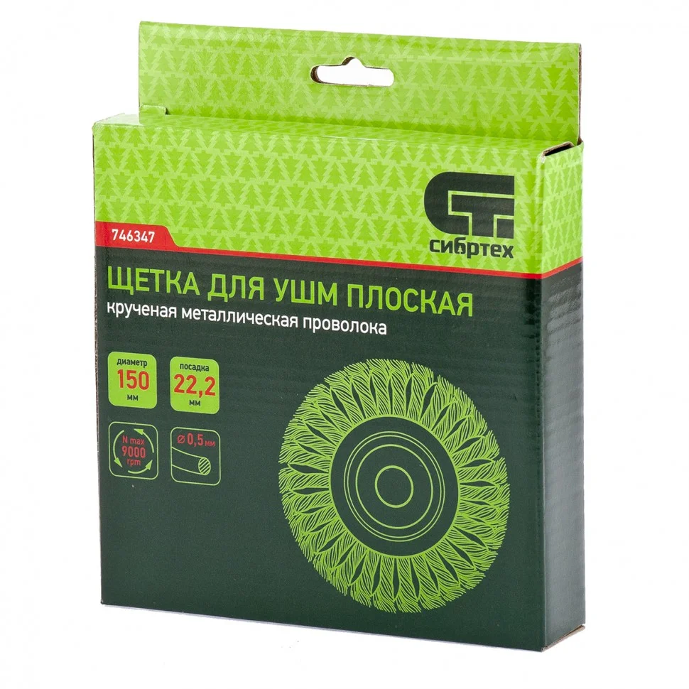 Плоская щетка Сибртех 746347 диаметром 150 мм и посадкой 22,2 мм, с крученой проволокой 0,5 мм, устанавливается на вал УШМ. Щетина с крученой проволокой эффективно удаляет толстый слой ржавчины, лакокрасочных материалов и загрязнения с поверхностей при проведении грубой (черновой) обработки. Плоская форма позволяет обрабатывать труднодоступные места, в т.ч. углы и изгибы. Рекомендуется использовать щетку на оборотах не более 9000 об/мин.ПреимуществаЗа счет высококачественной нержавеющей проволоки обеспечивается долговечность щетины.Универсальная щетка рассчитана на обработку твердых поверхностей из любых материалов: металла, древесины, цветных металлов, пластика и т.д.Щетку можно использовать вне помещений, т.к. щетина покрыта маслом, а корпус оцинкован.