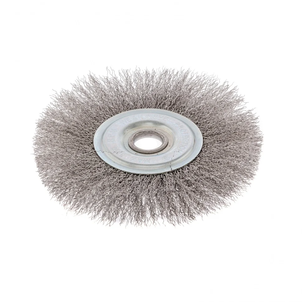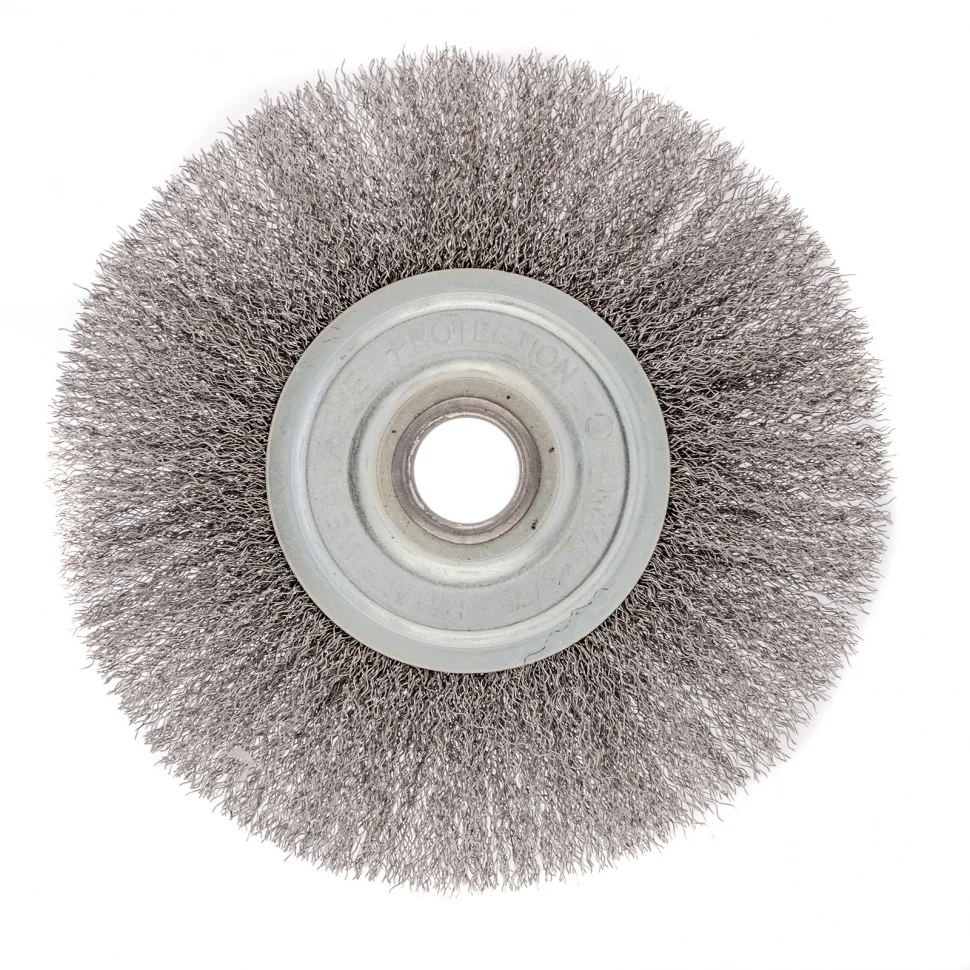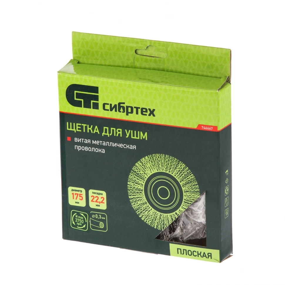 Плоская щетка для УШМ Сибртех 746667 диаметром 175 мм, с посадкой 22,2 мм, с щетиной из витой проволоки, предназначена для щадящей очистки твердых поверхностей от загрязнений, ржавчины, остатков краски и других покрытий. Щетина из проволоки толщиной 0,3 мм постепенно снимает тонкий слой материала. Плоская форма щетки делает ее оптимальным инструментом для обработки внутренних углов, пазов, изгибов и малодоступных мест. Щетка позволяет придать шероховатость или подчеркнуть структуру материала. Насадка устанавливается на фланец углошлифовальной машины и подходит для продолжительной работы, не требующей частой смены оснасток. Рекомендуемая максимальная скорость вращения составляет 4500 об/мин. Для обеспечения безопасности оператора следует использовать средства индивидуальной защиты. Щетка применяется в строительной, производственной сфере, а также в быту.ПреимуществаБлагодаря витой проволоке щетина хорошо держит форму.Проволока из высококачественной стали обеспечивает щетке высокий ресурс работоспособности.Оцинкованный корпус и щетина, покрытая техническим маслом, защищены от коррозии, что продлевает срок службы оснастки.