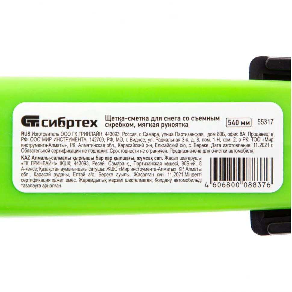 Щетка-сметка для снега со съемным скребком, мягкая рукоятка, 540 мм Сибртех 55317
