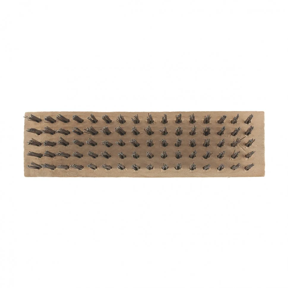 Плоская зачистная 5-рядная щетка Сибртех 74810 с деревянным корпусом и щетиной из закаленной прямой проволоки — ручной инструмент, позволяющий очистить поверхность от заусенцев, загрязнений, ржавчины, остатков штукатурки и лакокрасочного слоя. Расположенный в 5 рядов ворс обеспечивает эффективное воздействие на обрабатываемую поверхность. Подходит для обработки металла, дерева, пластика и сварных швов. Используется в строительстве, авторемонтном деле, будет полезна во время ремонта и в быту.ПреимуществаВорс изготовлен из закаленной стальной проволоки, поэтому прочен и износостоек.Щетина надежно зафиксирована в основании и не выпадает во время работы.В каждом пучке 20 щетинок, что обеспечивает устойчивость щетки к повышенным нагрузкам.Проволока имеет устойчивость к коррозии благодаря масляной пленке.Долговечный деревянный корпус увеличивает надежность кордщетки.