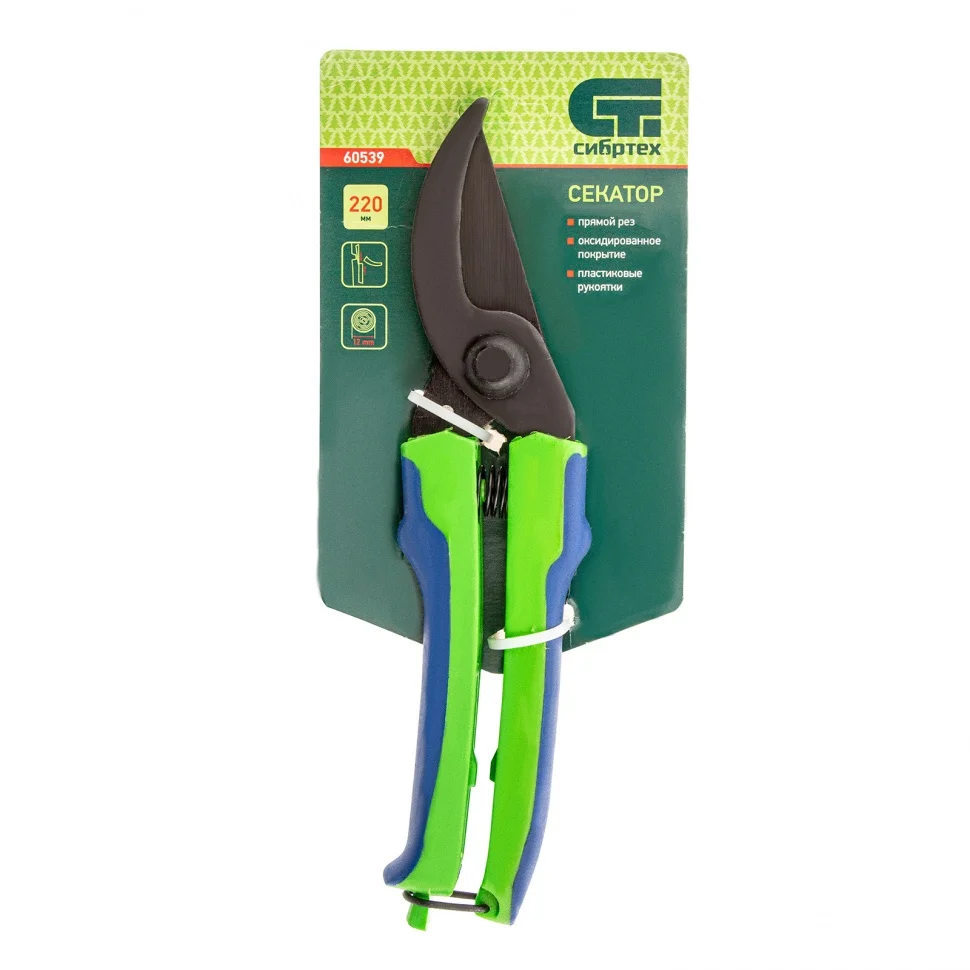Секатор прямого реза, 220 мм, пластиковые рукоятки, Горизонт, Россия, Сибртех 60539