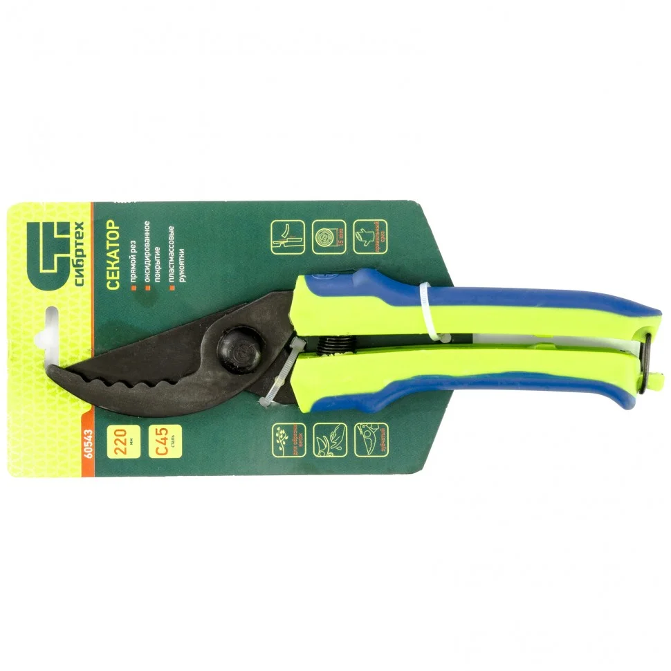 Секатор прямого реза, 220 мм, зубчатый, пластиковые рукоятки, Горизонт, Россия, Сибртех 60543