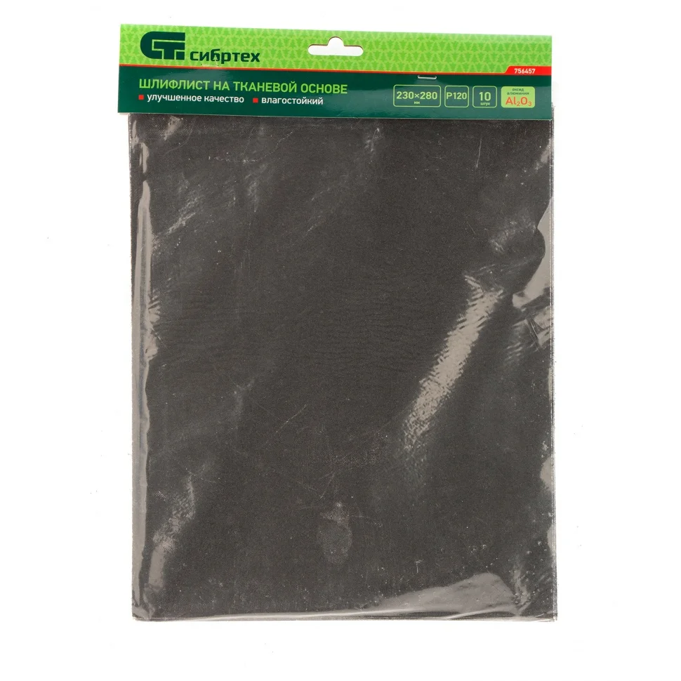 Шлифлист на тканевой основе Сибртех Р 120 арт. 756457 размером 230 x 280 мм подходит для ручной и машинной шлифовки поверхностей. Он позволяет работать с материалами из дерева, металла, пластмассы. Среднезернистый абразив Р120 обеспечивает высокое качество чистовой обработки поверхностей, эффективное удаление тонкого слоя лакокрасочных покрытий, ржавчины, загрязнений и небольших заусенцев.ПреимуществаЗерно из оксида алюминия отличается заостренной формой и твердостью, что позволяет увеличить скорость обработки поверхностей.Абразивный слой с частицами размером 100-125 мкм оптимален для подготовки поверхностей к нанесению отделочных материалов.Шлифлист влагостойкий, поэтому его можно использовать для обработки сырой древесины.Основа из гибкой и прочной на разрыв ткани обеспечивает повышенную износостойкость шлифлиста и удобство в работе.В набор входит 10 шлифлистов, их хватит на долгое время.