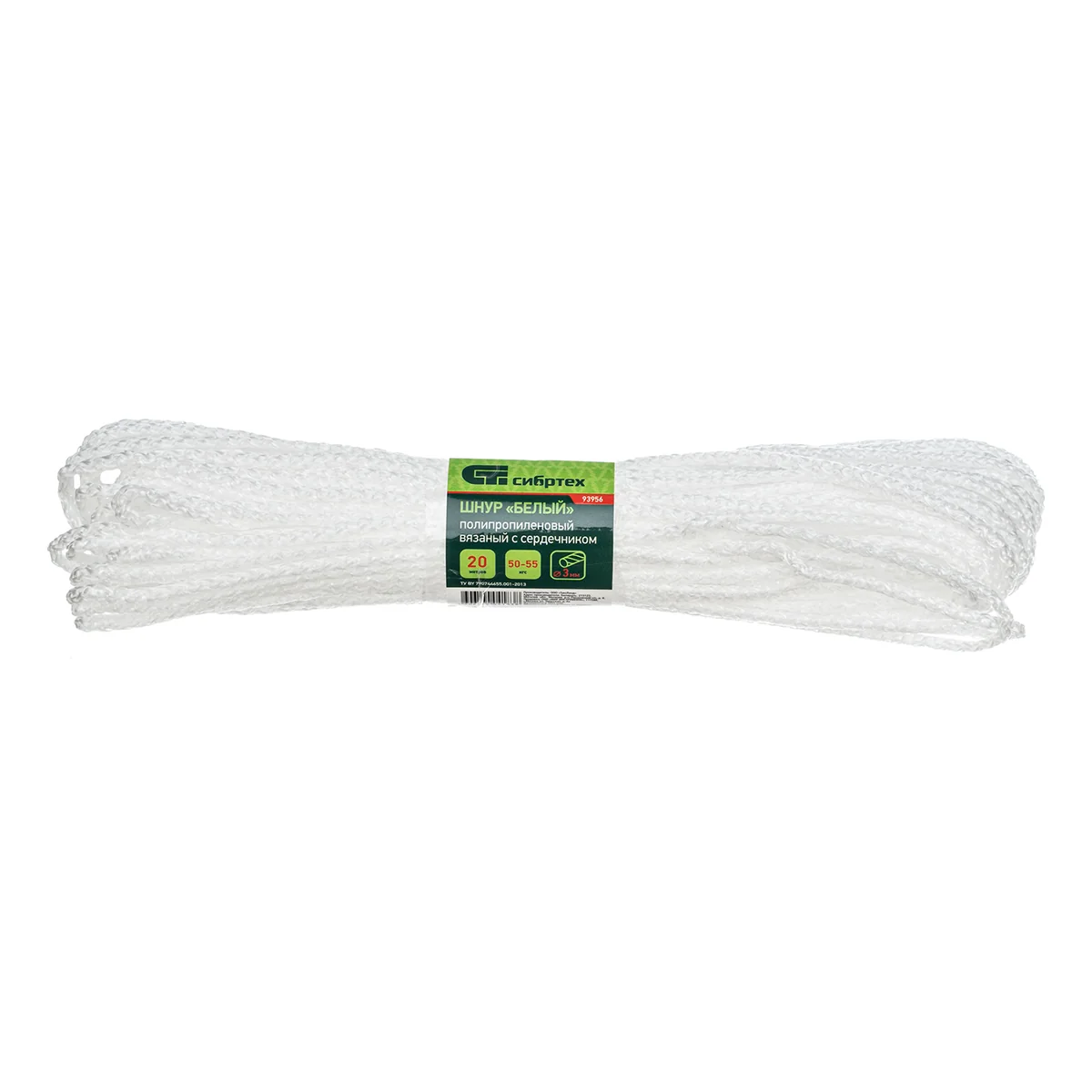 Вязаный полипропиленовый шнур с сердечником Сибртех 93956 белого цвета, диаметром 3 мм, длиной 20 м, будет полезен для хозяйственных нужд — сушки белья, связывания предметов, подвязки растений. Пригодится также в походе, на охоте или рыбалке. Благодаря сердечнику и высокопрочной оплетке вязаный шнур обладает повышенной устойчивостью к истиранию и разрыву — максимальная разрывная нагрузка составляет 50 кгс. Изделие не растягивается и не провисает под значительным весом.