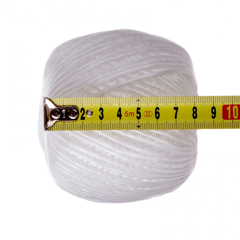 Полипропиленовый шпагат Сибртех 93879 длиной 100 м и диаметром 2,5 мм — обвязочный материал, использующийся почтовыми и курьерскими службами, производственными и сельскохозяйственными предприятиями, строителями, а также востребованный в быту. Многониточная свивка придает изделию прочность — шпагат выдерживает разрывную нагрузку до 69 кгс. Он намотан на бобину таким образом, что разматывать его можно как с внутренней, так и с наружной стороны.ПреимуществаШпагат характеризуется долговечностью, поскольку изготовлен из полипропиленовых нитей, устойчивых к износу.Изделие можно использовать в сложных условиях, т.к. волокна полипропилена не разрушаются в агрессивной среде, не подвержены гниению и воздействию микроорганизмов.Бечевка подходит для применения в любом климате, поскольку она влагонепроницаема и устойчива к перепадам температур.Шпагат хорошо различим в условиях слабой освещенности благодаря яркой расцветке.Длина шпагата 100 м, поэтому его хватит для выполнения большого объема работ.