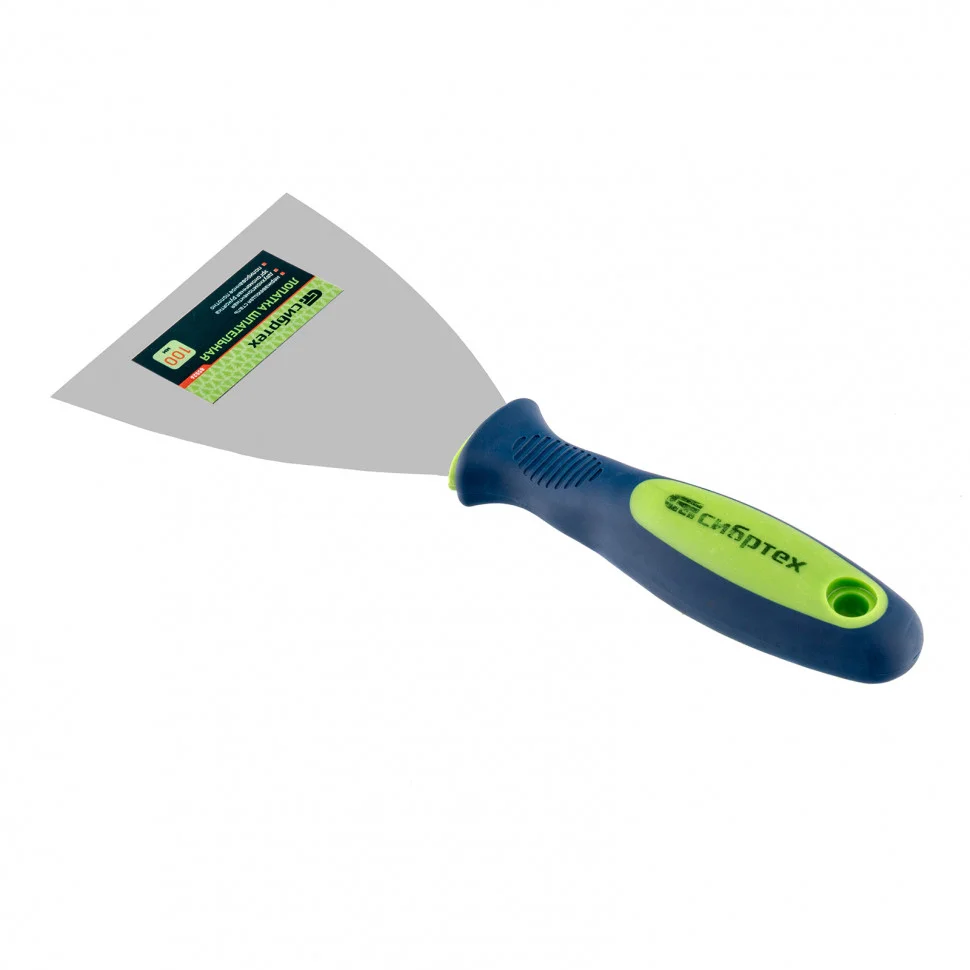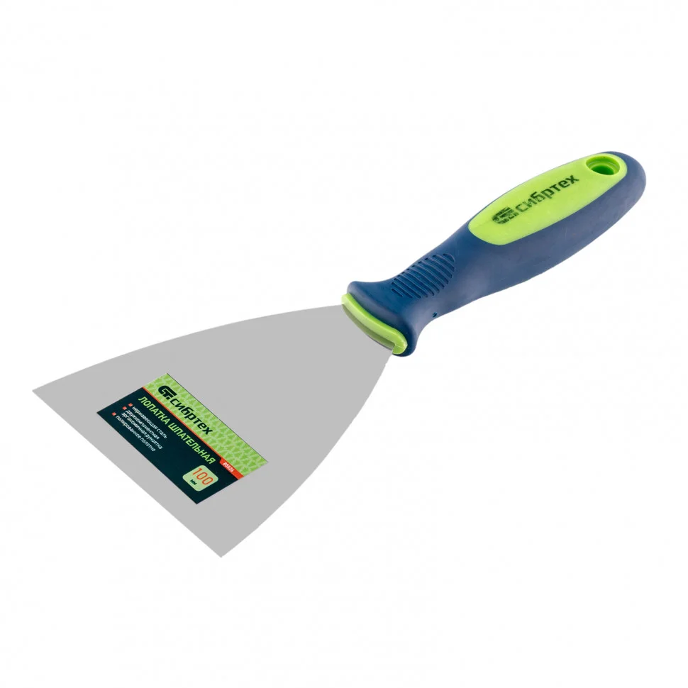 Шпательная лопатка Сибртех из нержавеющей стали 85526, шириной 100 мм, с 2-компонентной ручкой, облегчает проведение ремонтно-отделочных работ. Позволяет наносить и разравнивать строительные смеси, шпаклевать швы, заполнять трещины, удалять старые обои и выполнять работы в труднодоступных местах.ПреимуществаДолговечность и защита от коррозии — рабочая часть изготовлена из профилированной нержавеющей стали.Эффективная работа — за счет зеркальной полировки с полотна легко удаляются остатки смеси.Гибкость и прочность — рабочее полотно прошло термическую обработку для повышения эксплуатационных качеств.Ширина 10 см — небольшая лопатка оптимально подходит для исправления мелких неровностей и трещин в труднодоступных местах.Эргономичность — рукоятка анатомической формы имеет нескользящее покрытие для удобного захвата и комфортной работы.Долговечность — рабочее полотно прочно соединено с рукояткой.Удобное подвесное хранение — в рукоятке предусмотрено отверстие.