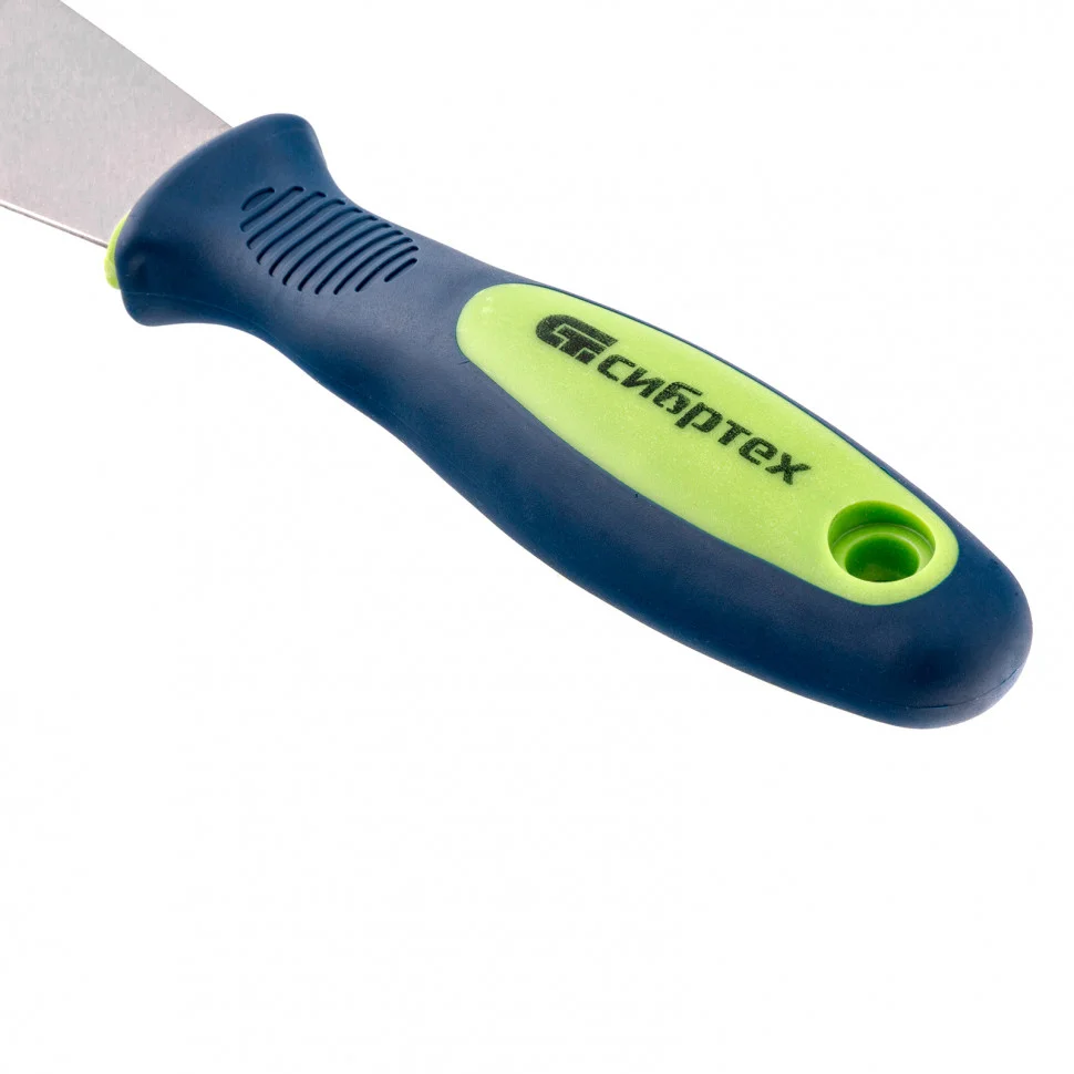 Шпательная лопатка Сибртех из нержавеющей стали 85521, шириной 40 мм, с 2-компонентной ручкой, облегчает проведение ремонтно-отделочных работ. Позволяет наносить и разравнивать строительные смеси, шпаклевать швы, заполнять трещины, удалять старые обои и выполнять работы в труднодоступных местах.ПреимуществаДолговечность и защита от коррозии — рабочая часть изготовлена из профилированной нержавеющей стали.Эффективная работа — за счет зеркальной полировки с полотна легко удаляются остатки смеси.Гибкость и прочность — рабочее полотно прошло термическую обработку для повышения эксплуатационных качеств.Ширина 4 см — небольшая лопатка оптимально подходит для исправления мелких неровностей и трещин в труднодоступных местах.Эргономичность — рукоятка анатомической формы имеет нескользящее покрытие для удобного захвата и комфортной работы.Долговечность — рабочее полотно прочно соединено с рукояткой.Удобное подвесное хранение — в рукоятке предусмотрено отверстие.