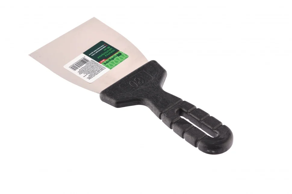 Шпательная лопатка Сибртех 85433 с полотном шириной 80 мм из нержавеющей стали и пластмассовой ручкой рассчитана на нанесение, выравнивание и сглаживание строительных растворов и смесей. Актуальна при проведении ремонтно-отделочных работ, подходит для начинающих и профессиональных мастеров.ПреимуществаУпругое рабочее полотно быстро принимает первоначальную форму даже после сильных изгибающих нагрузок.Ровное лезвие облегчает нанесение и последующее выравнивание составов.Рабочее полотно из нержавеющей стали устойчиво к образованию коррозии.Ширина полотна 8 см удобна для работы в труднодоступных местах.Эргономичная пластмассовая рукоятка с рельефной поверхностью делает работу более комфортной.В рукоятке предусмотрено отверстие для организации подвесного хранения.Надежное сцепление полотна с рукояткой обеспечивает долговечность инструмента.
