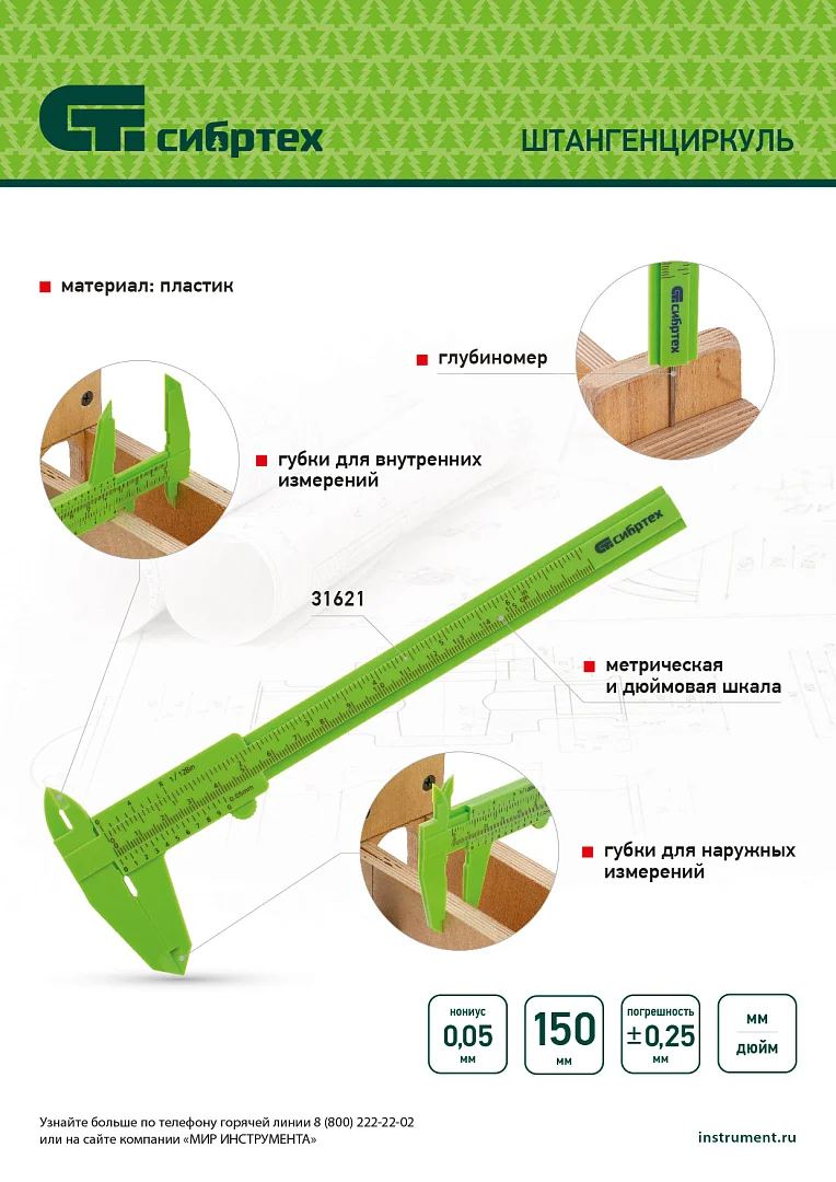 Штангенциркуль пластиковый, 150 мм Сибртех 31621