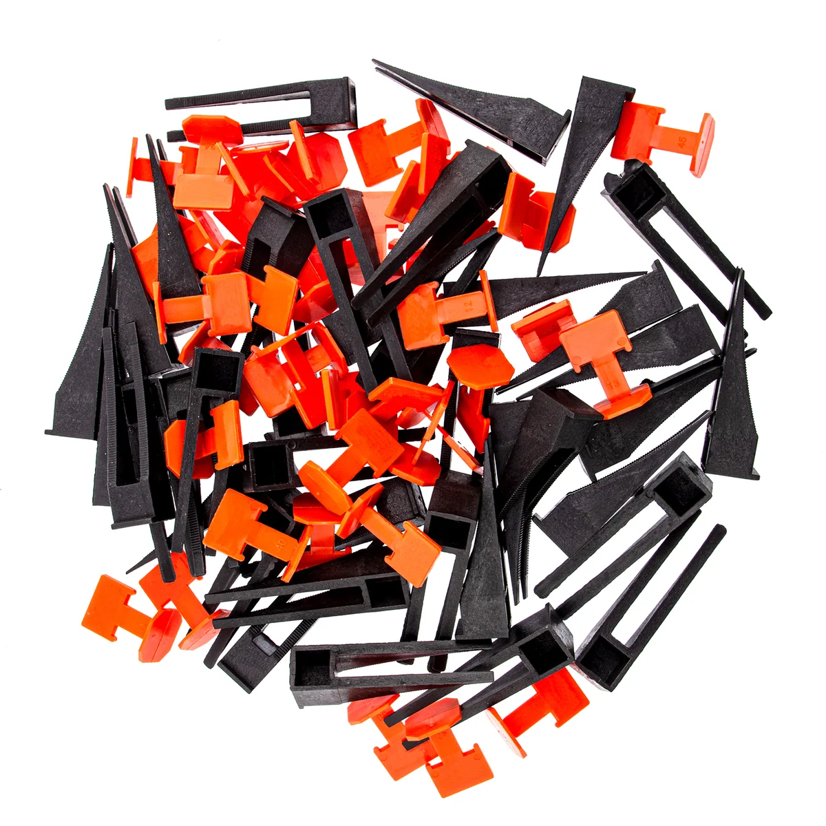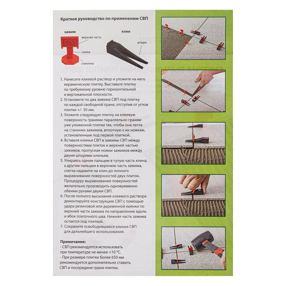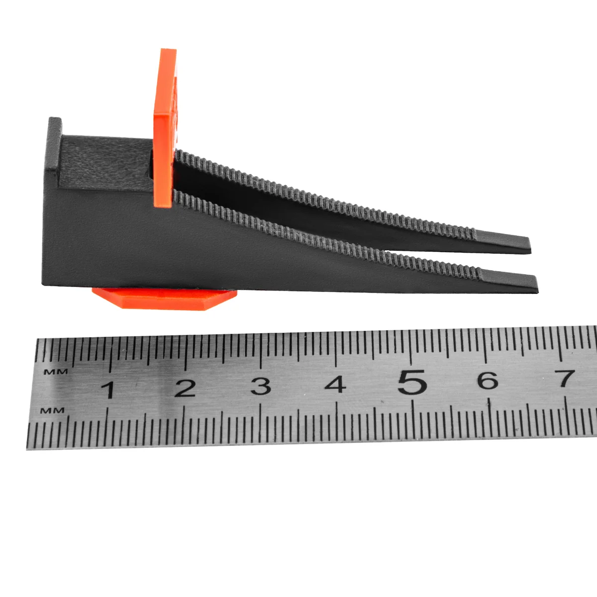 - Надежная фиксация — благодаря ребристой поверхности клинья надежно фиксируются с зажимами для плитки.
