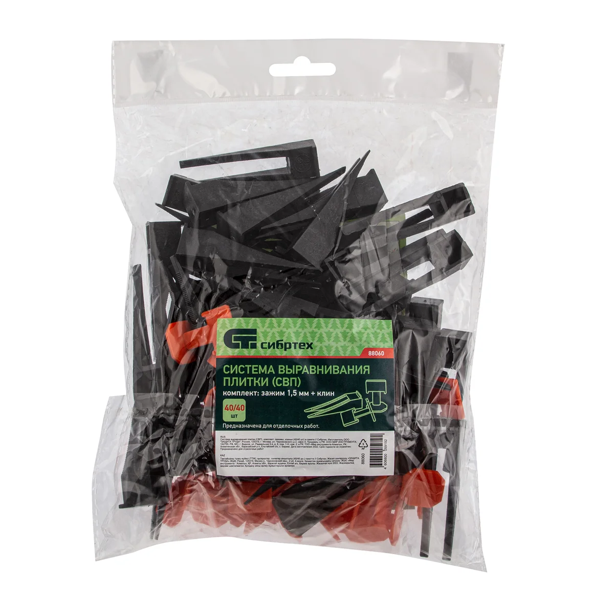 Система выравнивания плитки (СВП) Сибртех 88060 включает в комплект все необходимое: зажимы и клинья (40/40 шт. в пакете) для керамической и керамогранитной плитки толщиной 6-12 мм. Изделия предотвращают смещение плитки и гарантируют получение идеально ровных, аккуратных швов. Зажимы для плитки (СВП) предназначены для формирования швов 1,5-1,7 мм.