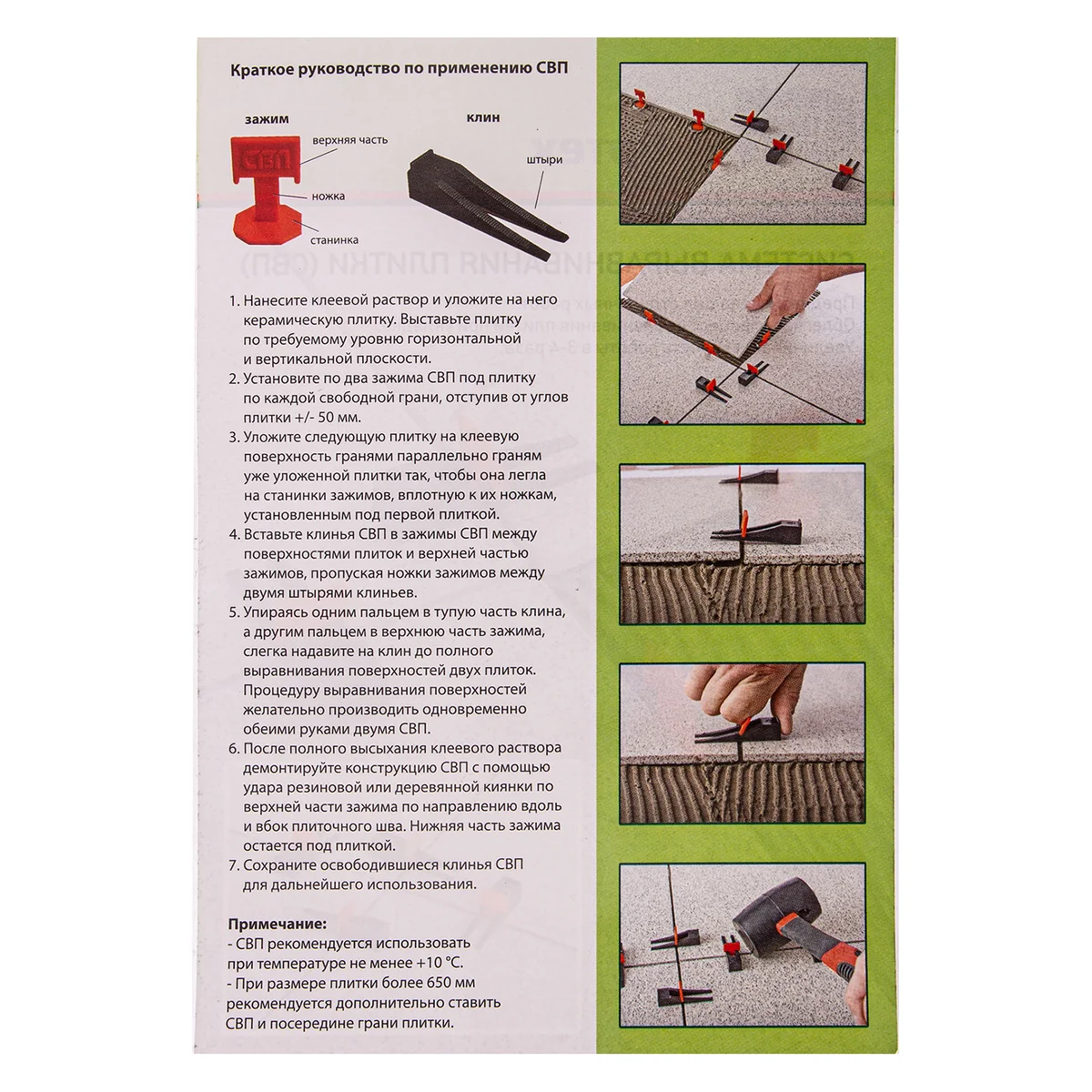 - Высокая скорость работы — выравнивание плитки происходит гораздо быстрее по сравнению с методом, при котором СВП не применяется.