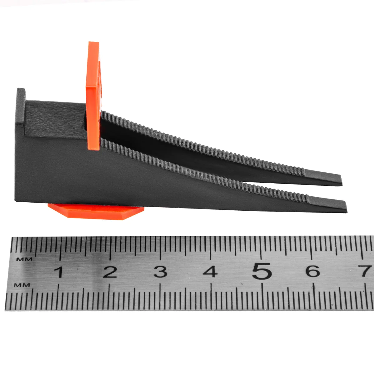 - Надежная фиксация — благодаря ребристой поверхности клинья надежно фиксируются с зажимами для плитки.
