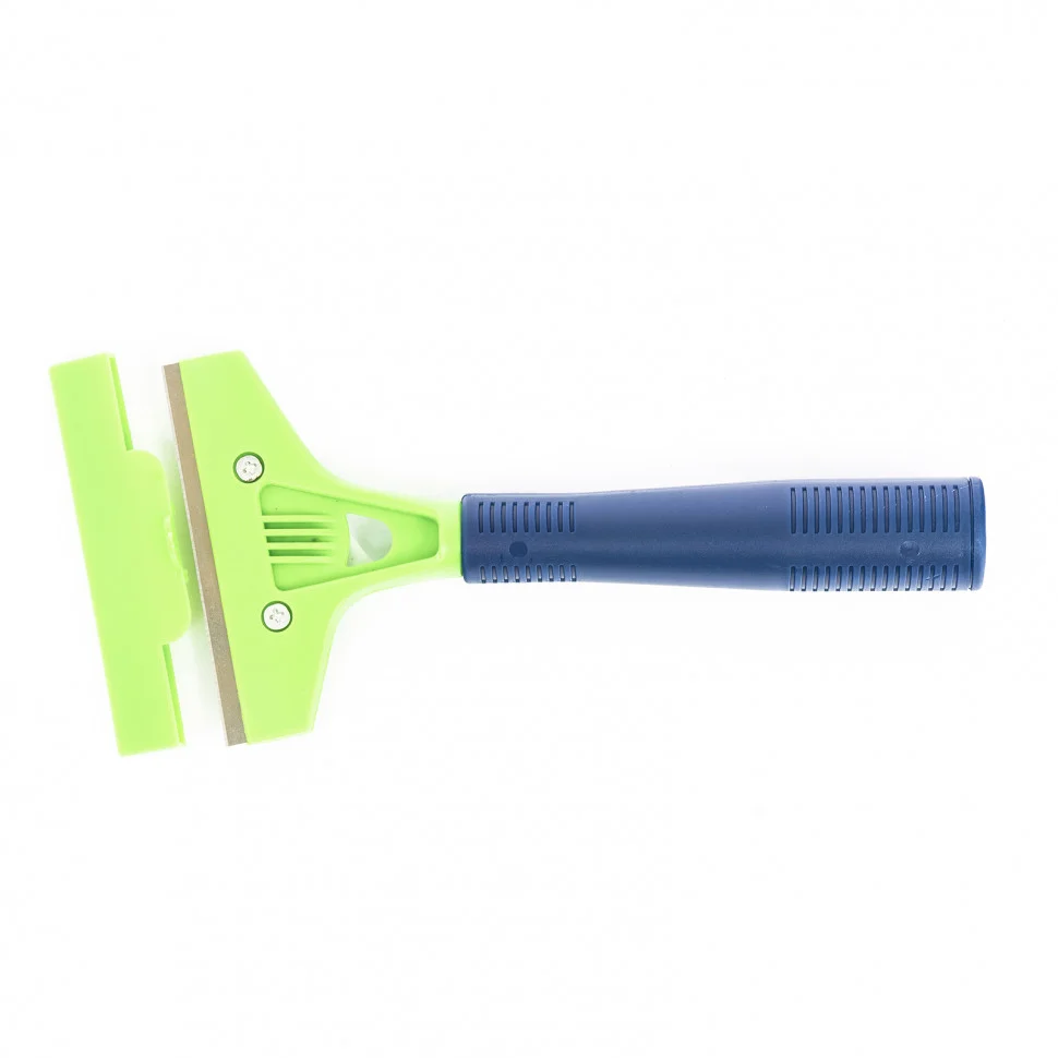 Скребок Сибртех 79529 длиной 200 мм, с лезвием шириной 100 мм, с пластиковой ручкой, — ручной инструмент для удаления старых лакокрасочных покрытий и загрязнений с керамических, стеклянных, металлических и прочих гладких поверхностей. Имеет двустороннее лезвие, острая сторона которого облегчает снятие остатков краски и лака, монтажной пены, удаление наклеек и жевательной резинки. Тупая сторона позволяет использовать скребок для удаления герметика, строительных смесей, шпаклевки и цемента. В случае износа лезвия нет необходимости приобретать новый инструмент, поскольку полотно можно заменить. Скребок пригодится во время ремонта, а также будет полезен в быту.ПреимуществаЛезвие изготовлено из прочной углеродистой стали, что обеспечивает инструменту высокий ресурс работоспособности.Пластиковая рукоятка удобно лежит в руке, что повышает комфортность работы.Крышка, закрывающая лезвие, обеспечивает безопасность хранения и транспортировки инструмента.Лезвие надежно зафиксировано в корпусе, поэтому не расшатается и не выпадет во время работы.