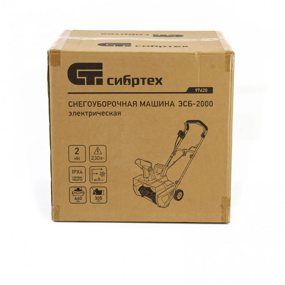 Электрическая снегоуборочная машина Сибртех ЭСБ-2000 97620 мощностью 2 кВт облегчит уборку территории после легкого снегопада. Работает от электрической сети, поэтому не производит шума и опасных выхлопов. Электродвигатель не требует сложного технического обслуживания.Преимущества:Надежный двигатель — медная обмотка гарантирует стабильную работу машины без риска перегрева.Максимальная электробезопасность — двойная изоляция токопроводящих элементов надежно защищает пользователя от поражения током.Эффективная работа — в зависимости от размера территории можно установить дальность выброса снега до 9 м, а также отрегулировать угол поворота выпускного желоба в пределах 180 градусов.Высокопрочный шнек из армированной резины — машина прослужит долгое время без риска поломок и повреждения декоративного покрытия на участке.Комфортное использование — термоизолирующее вспененное покрытие рукоятки поглощает вибрации и позволяет работать без перчаток.Маневренность — машина весит 13 кг и имеет небольшие размеры 48,5 х 100 х 102 см.Удобное хранение и транспортировка — благодаря складной рукоятке снегоуборщик не занимает много места.