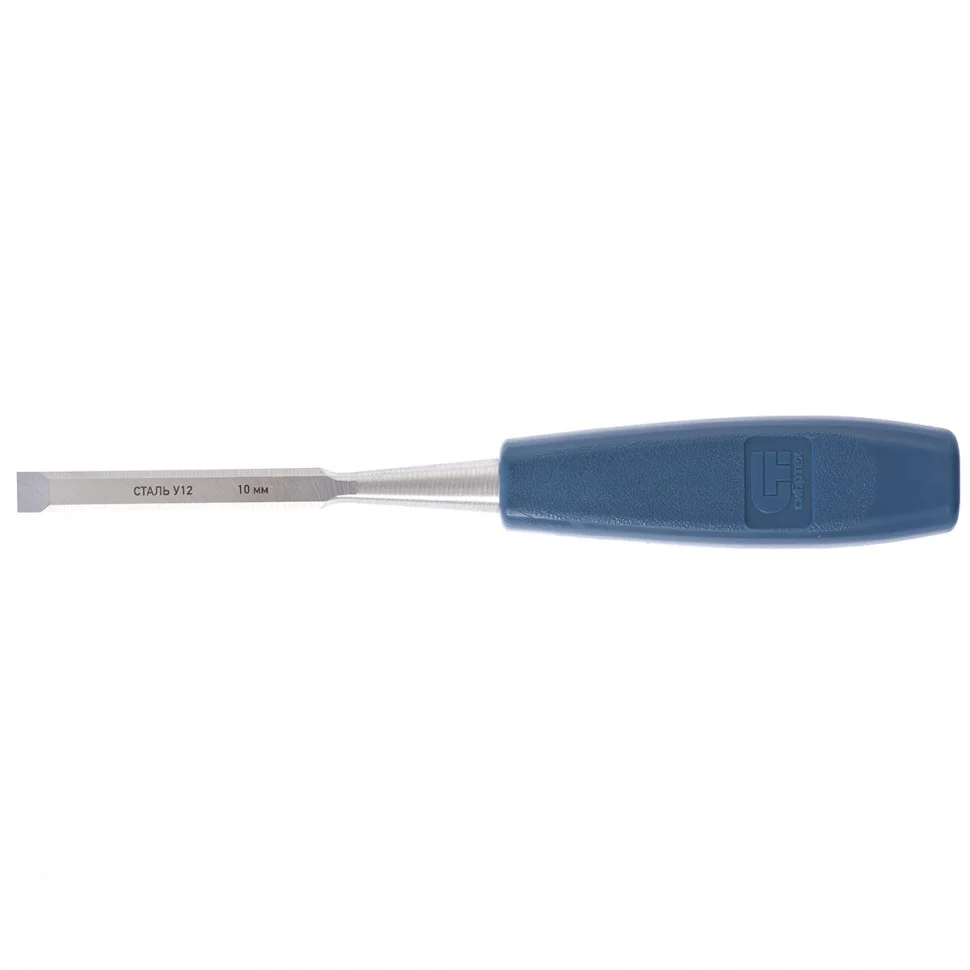 Стамеска Сибртех 24710 с пластиковой рукояткой и режущей частью шириной 10 мм подходит для обработки древесины любых пород. Предназначена для выборки небольших углублений, получения точных вырезов, снятия фасок и выполнения других столярно-плотницких работ. Инструмент будет полезен дома и в столярной мастерской.ПреимуществаПрочность и долговечность — рабочее полотно изготовлено из высококачественной конструкционной углеродистой стали 55.Эффективность и высокий ресурс — полотно закалено до твердости 56-57 HRC на 0,7 длины рабочей части, поэтому режущая кромка долго сохраняет остроту.Надежность и комфорт — ручка из ударопрочного пластика не выскальзывает из ладони и выдерживает длительное использование.