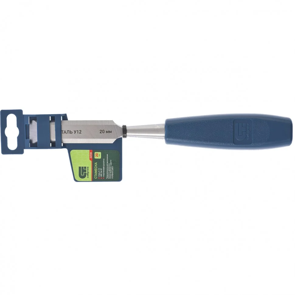 Стамеска Сибртех 24720 с пластиковой рукояткой и режущей частью шириной 20 мм подходит для обработки древесины любых пород. Предназначена для выборки небольших углублений, получения точных вырезов, снятия фасок и выполнения других столярно-плотницких работ. Инструмент будет полезен дома и в столярной мастерской.ПреимуществаПрочность и долговечность — рабочее полотно изготовлено из высококачественной конструкционной углеродистой стали 55.Эффективность и высокий ресурс — полотно закалено до твердости 56-57 HRC на 0,7 длины рабочей части, поэтому режущая кромка долго сохраняет остроту.Надежность и комфорт — ручка из ударопрочного пластика не выскальзывает из ладони и выдерживает длительное использование.