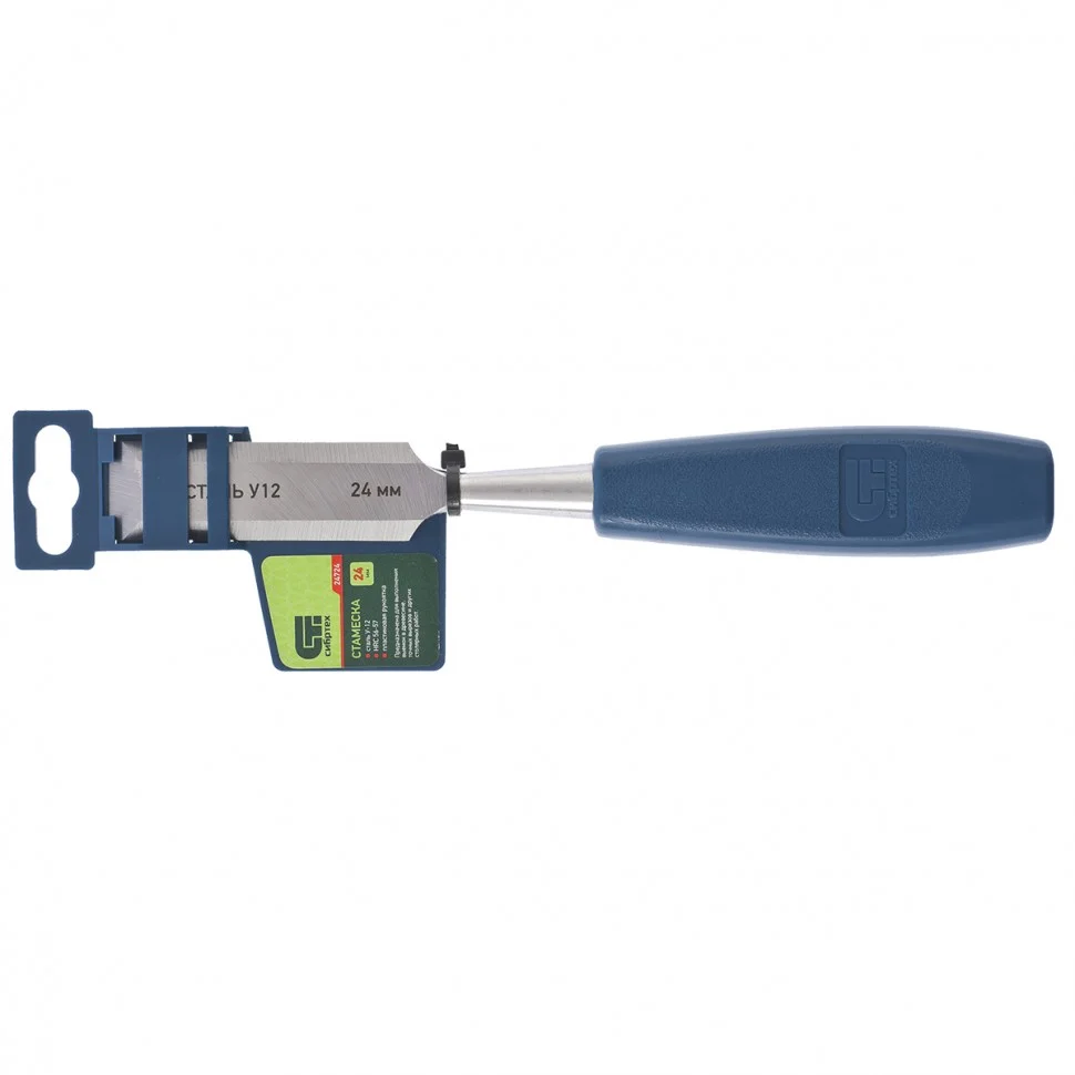 Стамеска Сибртех 24724 с пластиковой рукояткой и режущей частью шириной 24 мм подходит для обработки древесины любых пород. Предназначена для выборки небольших углублений, получения точных вырезов, снятия фасок и выполнения других столярно-плотницких работ. Инструмент будет полезен дома и в столярной мастерской.ПреимуществаПрочность и долговечность — рабочее полотно изготовлено из высококачественной конструкционной углеродистой стали 55.Эффективность и высокий ресурс — полотно закалено до твердости 56-57 HRC на 0,7 длины рабочей части, поэтому режущая кромка долго сохраняет остроту.Надежность и комфорт — ручка из ударопрочного пластика не выскальзывает из ладони и выдерживает длительное использование.