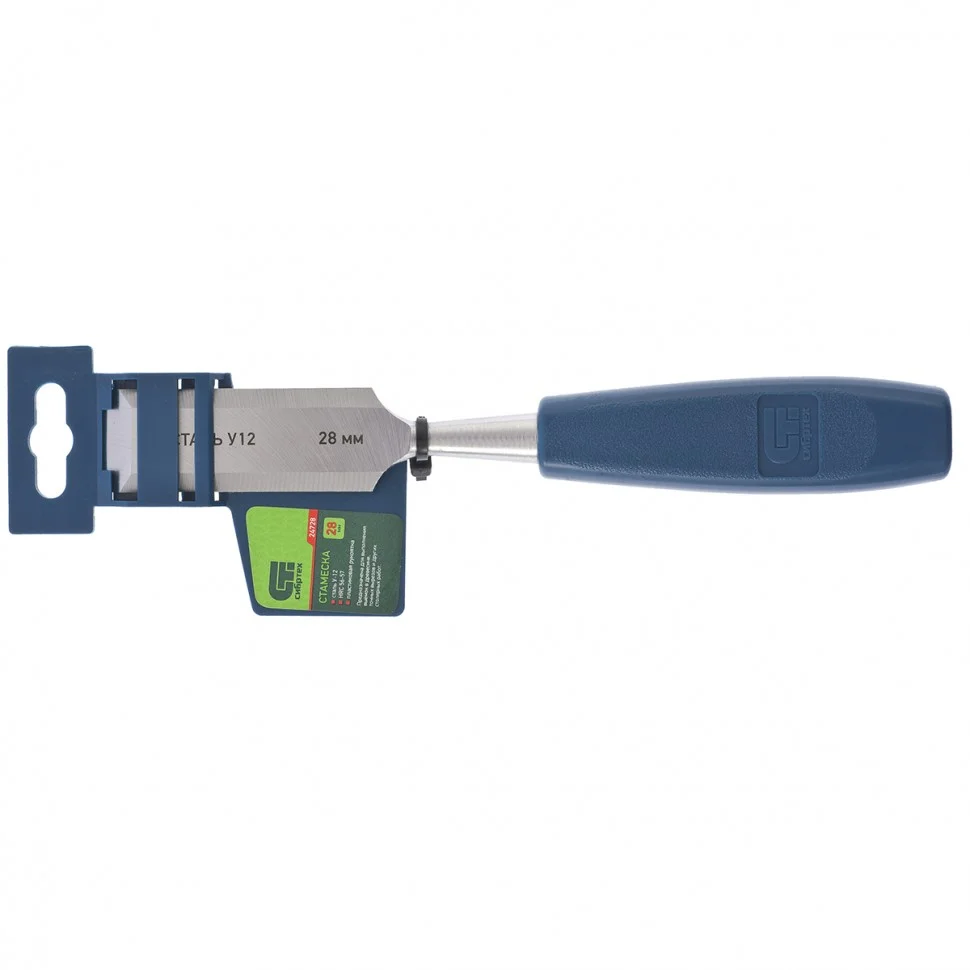 Стамеска Сибртех 24728 с пластиковой рукояткой и режущей частью шириной 28 мм подходит для обработки древесины любых пород. Предназначена для выборки небольших углублений, получения точных вырезов, снятия фасок и выполнения других столярно-плотницких работ. Инструмент будет полезен дома и в столярной мастерской.ПреимуществаПрочность и долговечность — рабочее полотно изготовлено из высококачественной конструкционной углеродистой стали 55.Эффективность и высокий ресурс — полотно закалено до твердости 56-57 HRC на 0,7 длины рабочей части, поэтому режущая кромка долго сохраняет остроту.Надежность и комфорт — ручка из ударопрочного пластика не выскальзывает из ладони и выдерживает длительное использование.