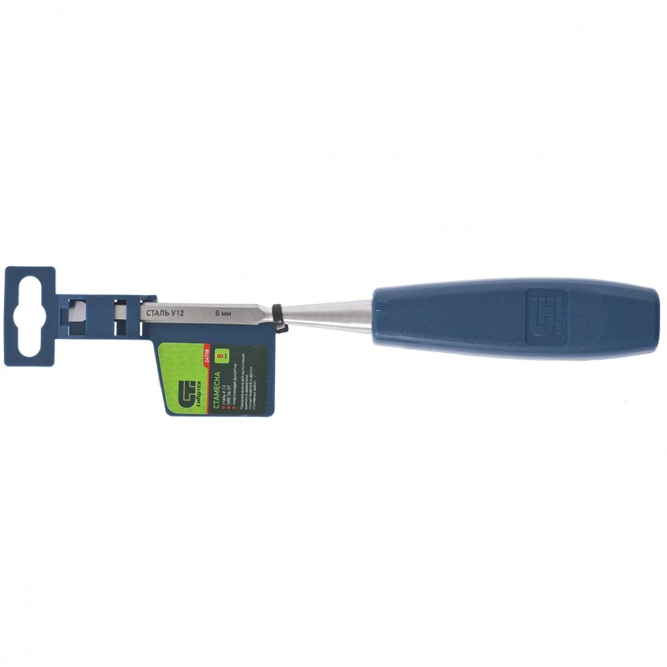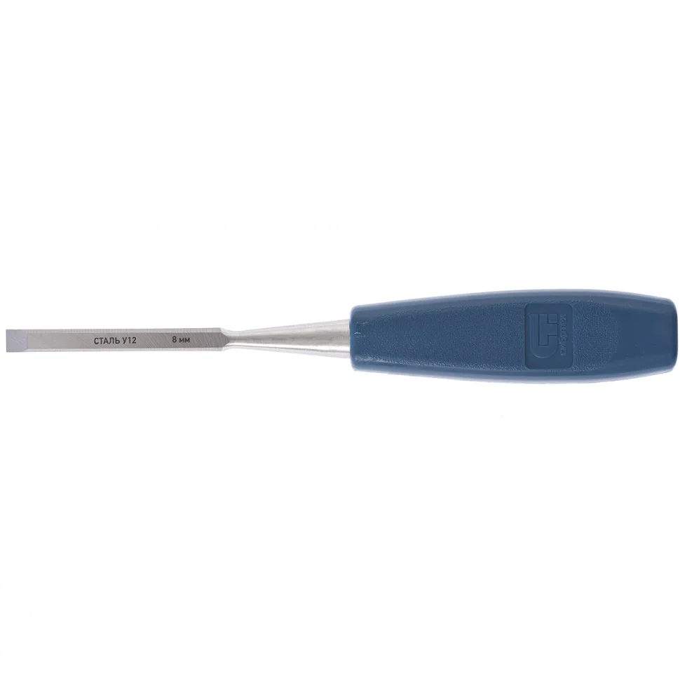 Стамеска Сибртех 24708 с пластиковой рукояткой и режущей частью шириной 8 мм подходит для обработки древесины любых пород. Предназначена для выборки небольших углублений, получения точных вырезов, снятия фасок и выполнения других столярно-плотницких работ. Инструмент будет полезен дома и в столярной мастерской.ПреимуществаПрочность и долговечность — рабочее полотно изготовлено из высококачественной конструкционной углеродистой стали 55.Эффективность и высокий ресурс — полотно закалено до твердости 56-57 HRC на 0,7 длины рабочей части, поэтому режущая кромка долго сохраняет остроту.Надежность и комфорт — ручка из ударопрочного пластика не выскальзывает из ладони и выдерживает длительное использование.