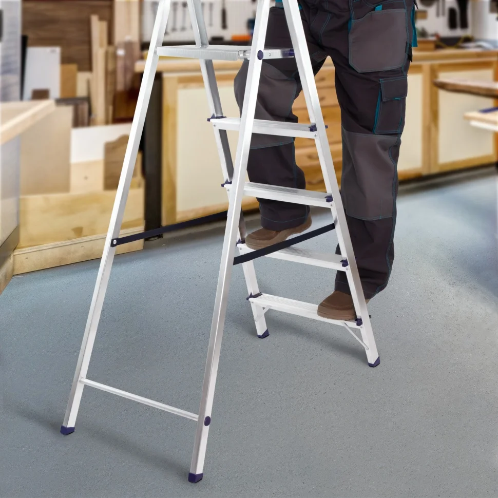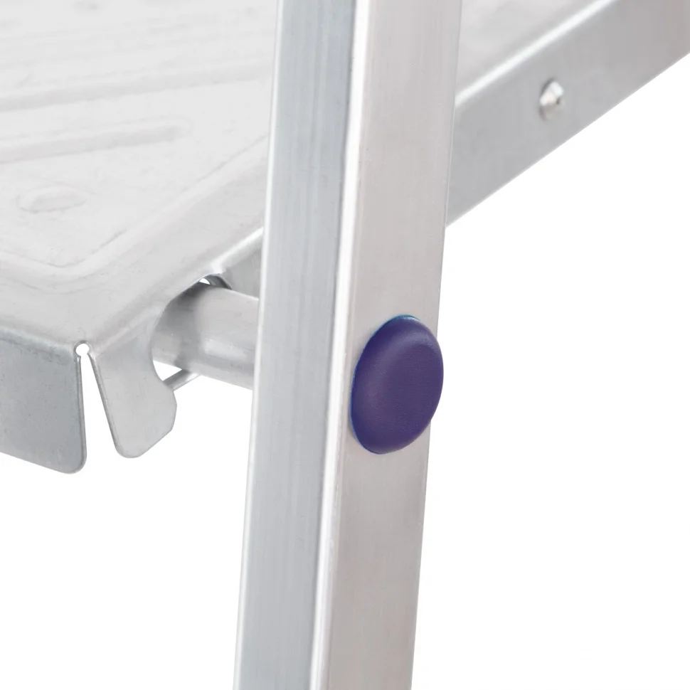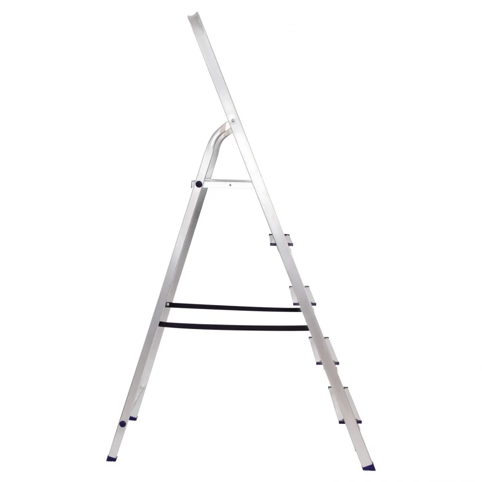 Прочная алюминиевая рама из прессованного профиля прямоугольного сечения.Устойчивая конструкция и надежная фиксация в рабочем положении.Высокая дуга безопасности, стальная рабочая площадка.Широкие профилированные ступени для длительной работы на высоте с противоскользящим рифлением.Удобна для хранения и транспортировки.Легкий вес в отличие от стальных стремянок.Используется в быту - дом, сад, гараж, а так же коммунальной и строительной деятельности.
