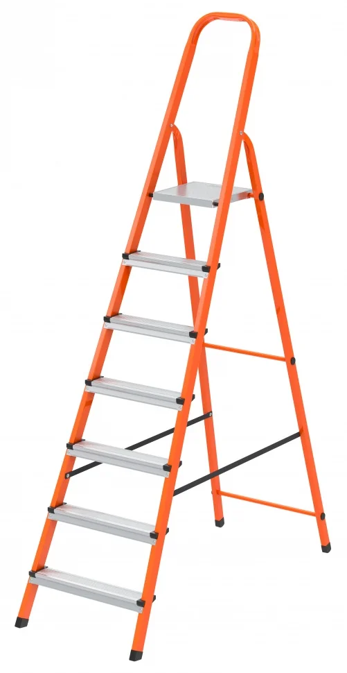 Легкая и прочная стремянка для применения в быту и строительстве. Широкое основание обеспечивает устойчивое положение. Рабочая площадка и ступени изготовлены из оцинкованной стали. Их рифленая поверхность предотвращает соскальзывание стопы. Высокая дуга безопасности защищает от падения во время работы.Массивная площадка с рифленой поверхностью.Защитные наконечники ступенейВысокая дуга безопасностиСтраховочные стяжки из высокопрочной лентыПластиковые вставки в основании стоек.