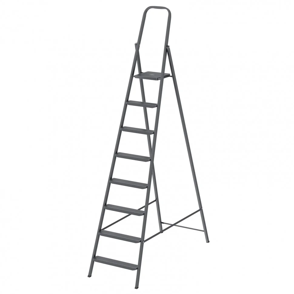 Используется в быту: дом, сад, гараж, а так же коммунальной и строительной деятельности.Прочная стальная рама прямоугольного сечения.Защитное покрытие стального профиля высококачественной эмалью - цвет антрацит.Устойчивая конструкция и надежная фиксация в рабочем положении.Высокая дуга безопасности, стальные ступени и рабочая площадка.Широкие профилированные ступени для длительной работы на высоте с противоскользящим рифлением.Прочная страховочная лента для безопасной работы на большой высоте.Пластиковые рифленые наконечники на основании опорных направляющих предотвращают скольжение на рабочей поверхности, не повреждают покрытие пола.Устойчива к неблагоприятным внешним воздействиям, таким как коррозия.