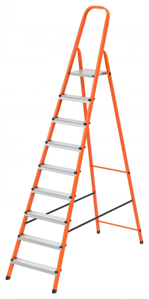 Легкая и прочная стремянка для применения в быту и строительстве. Широкое основание обеспечивает устойчивое положение. Рабочая площадка и ступени изготовлены из оцинкованной стали. Их рифленая поверхность предотвращает соскальзывание стопы. Высокая дуга безопасности защищает от падения во время работы.Массивная площадка с рифленой поверхностью.Защитные наконечники ступенейВысокая дуга безопасностиСтраховочные стяжки из высокопрочной лентыПластиковые вставки в основании стоек.