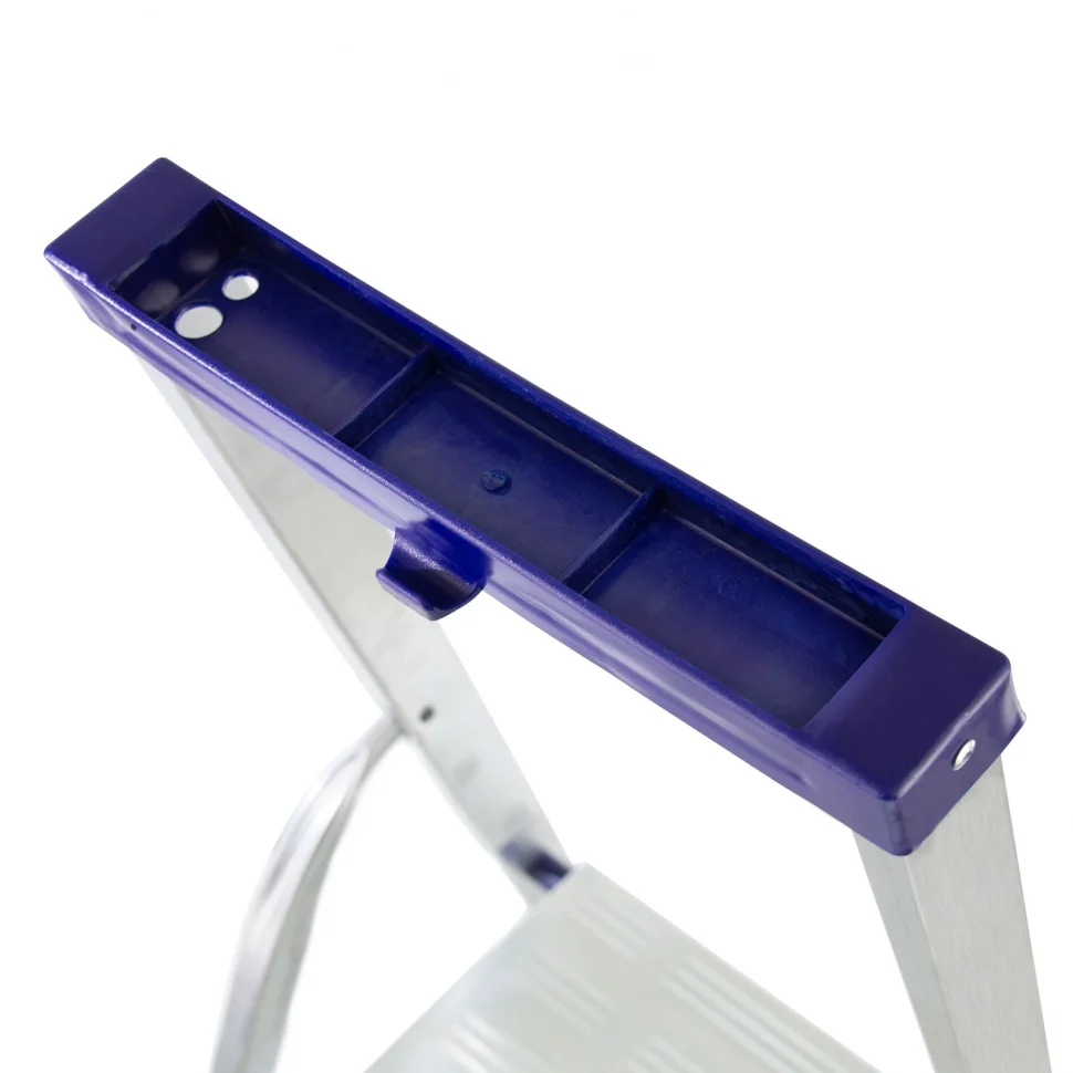 Прочная алюминиевая рама из прессованного профиля прямоугольного сечения.Устойчивая конструкция и надежная фиксация в рабочем положении.Удобный органайзер с отсеками для мелких деталей и отверстиями для крепления двух отверток.Усиленный узел крепления задней и передней опоры.Высокая дуга безопасности, стальная рабочая площадка.Широкие профилированные ступени для длительной работы на высоте с противоскользящим рифлением.Массивная площадка с рифленой поверхностью.Удобна для хранения и транспортировки.Легкий вес в отличие от стальных стремянок.Используется в быту - дом, сад, гараж, а так же коммунальной и строительной деятельности.