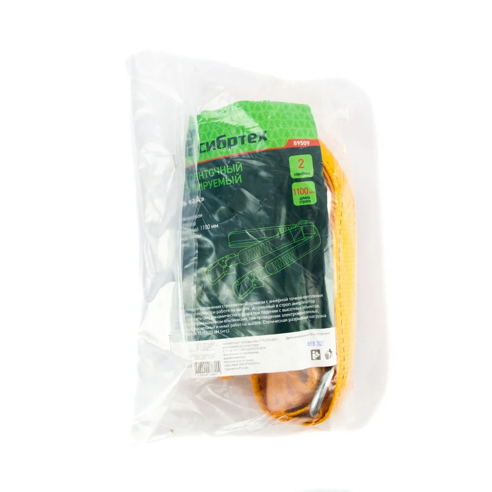 Ленточный нерегулируемый строп Сибртех 89509, модель «аА» с амортизатором, предназначен для соединения удерживающей (страховочной) привязи с анкерной точкой крепления. Применятся в ходе строительных, монтажных кровельных и других операций, когда необходимо обеспечить безопасность работника. Применение без страховочно-удерживающей привязи недопустимо.ПреимуществаВысокая прочность — строп из полиамидной ленты шириной 45 мм выдерживает статические нагрузки не менее 15 кН (1500 кгс).Безопасная работа — два прочных стальных карабина гарантируют надежную фиксацию, встроенный амортизатор гасит силу динамического удара в случае падения пользователя с высоты.Подтвержденное качество — лента изготовлена согласно требованиям, предъявляемым к средствам индивидуальной защиты по ТР ТС 019/2011, гарантийный срок составляет 2 года.